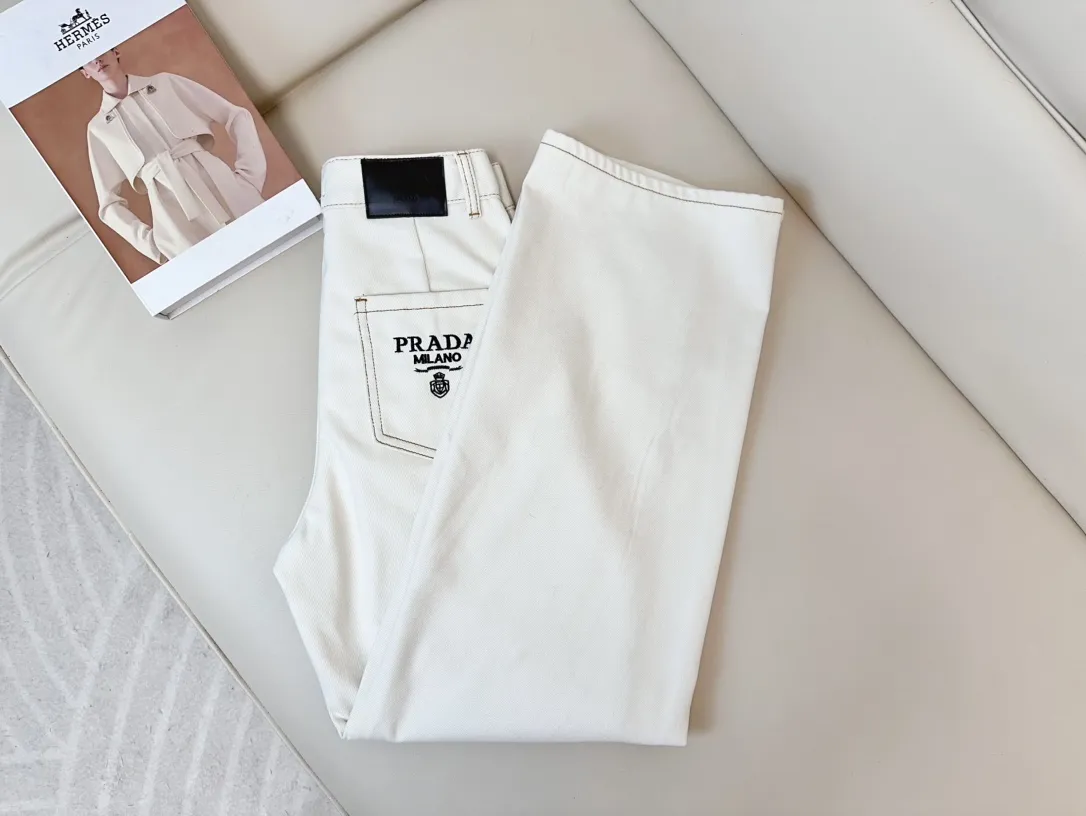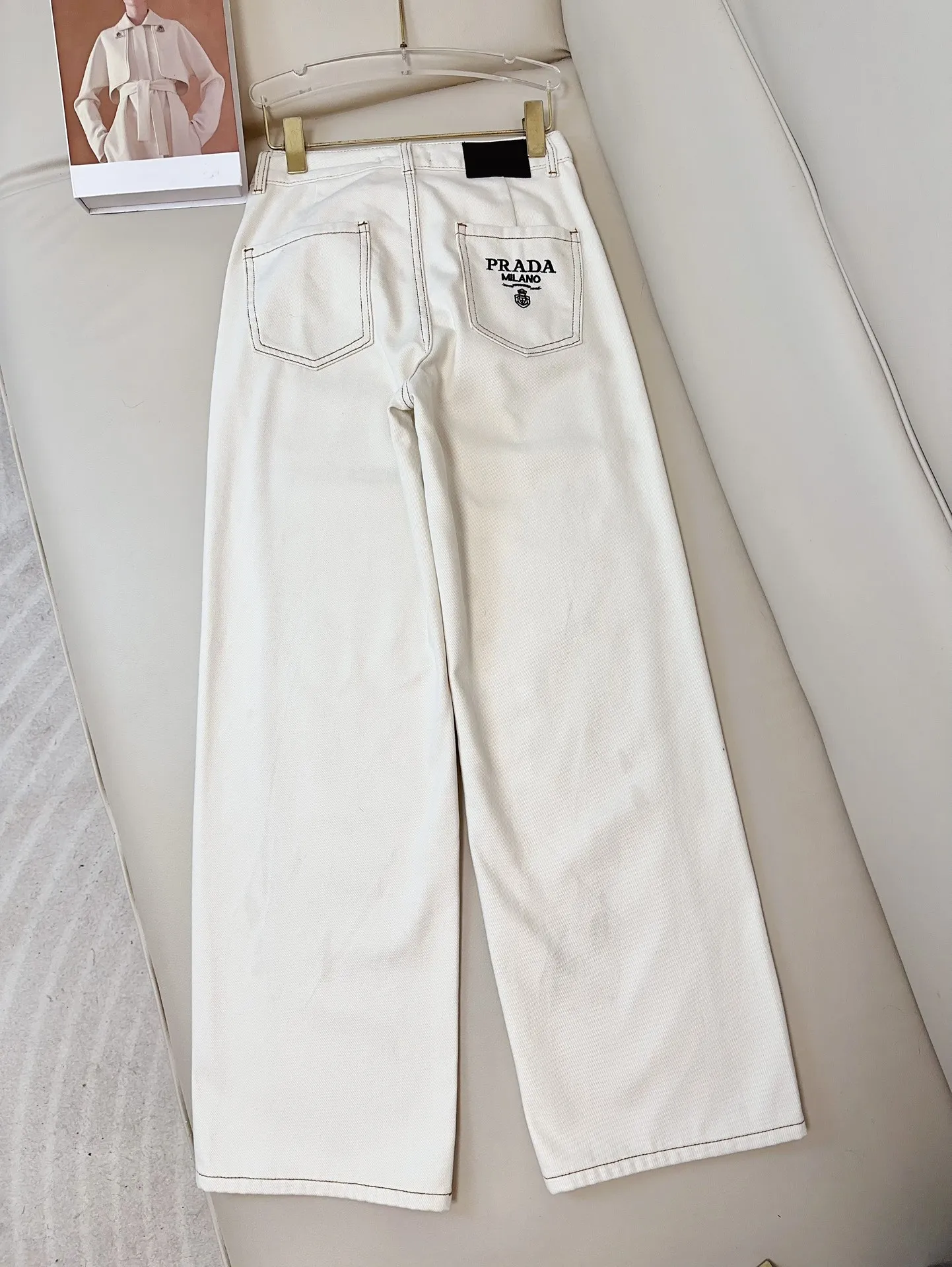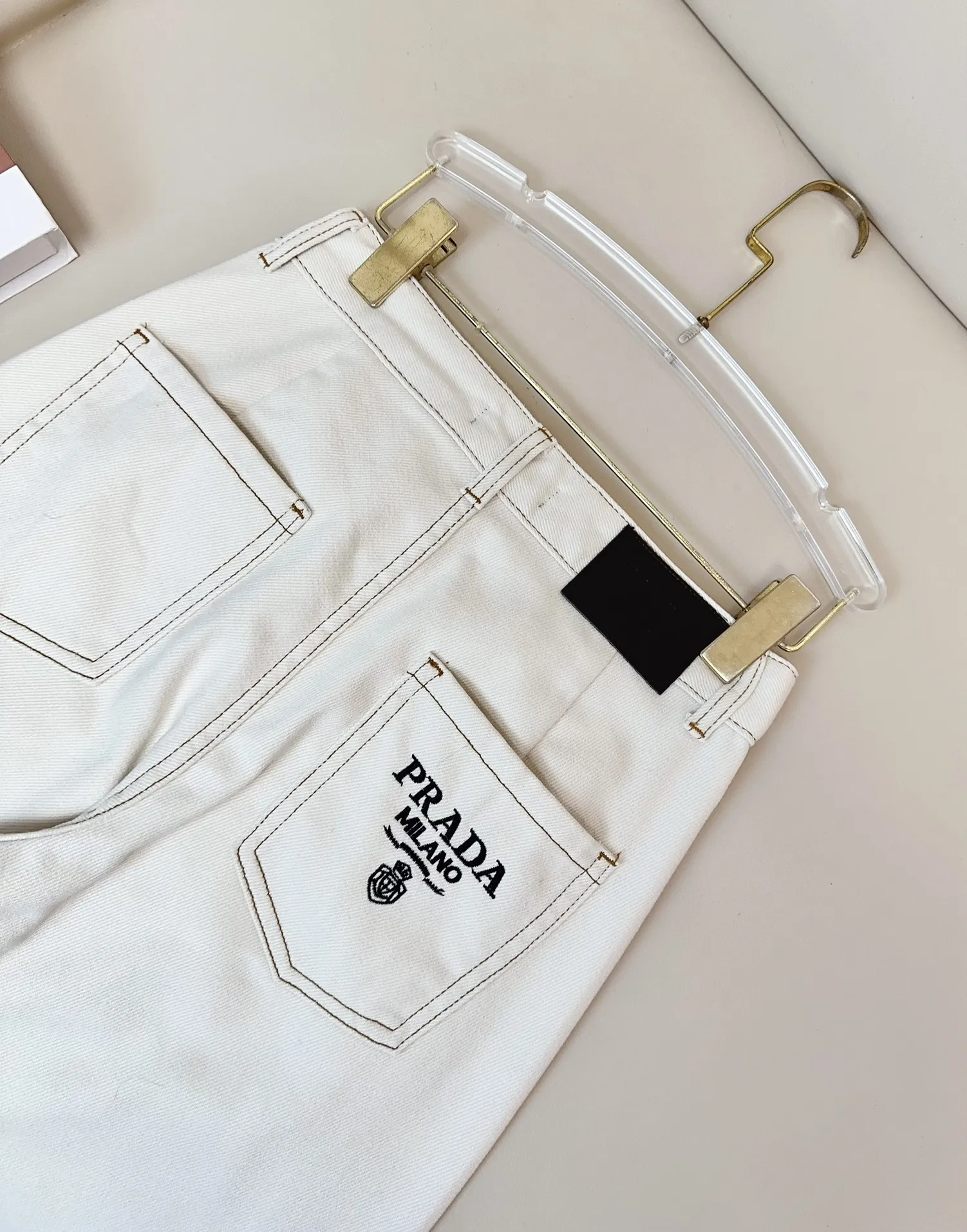 PRADA新款後ポケットプリントロゴデニムパンツブルーストレートワイド