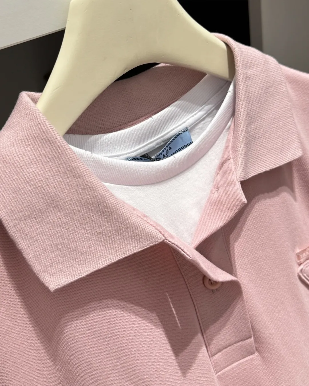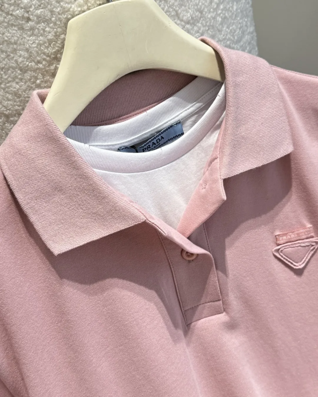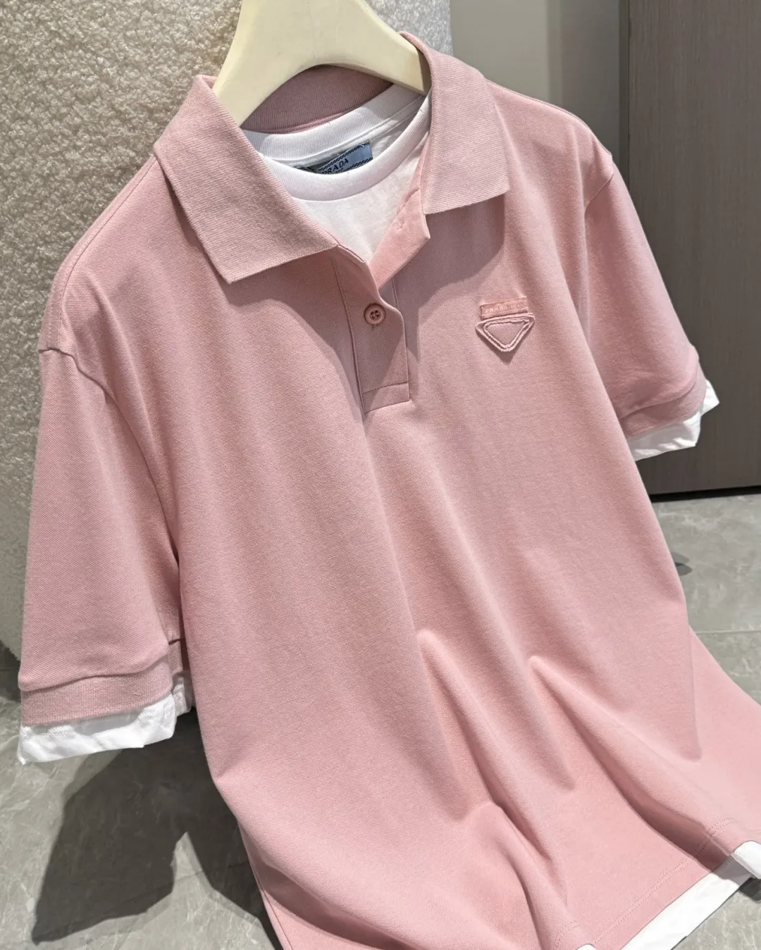 PRADAピンク偽の2ピース半袖Poloシャツ