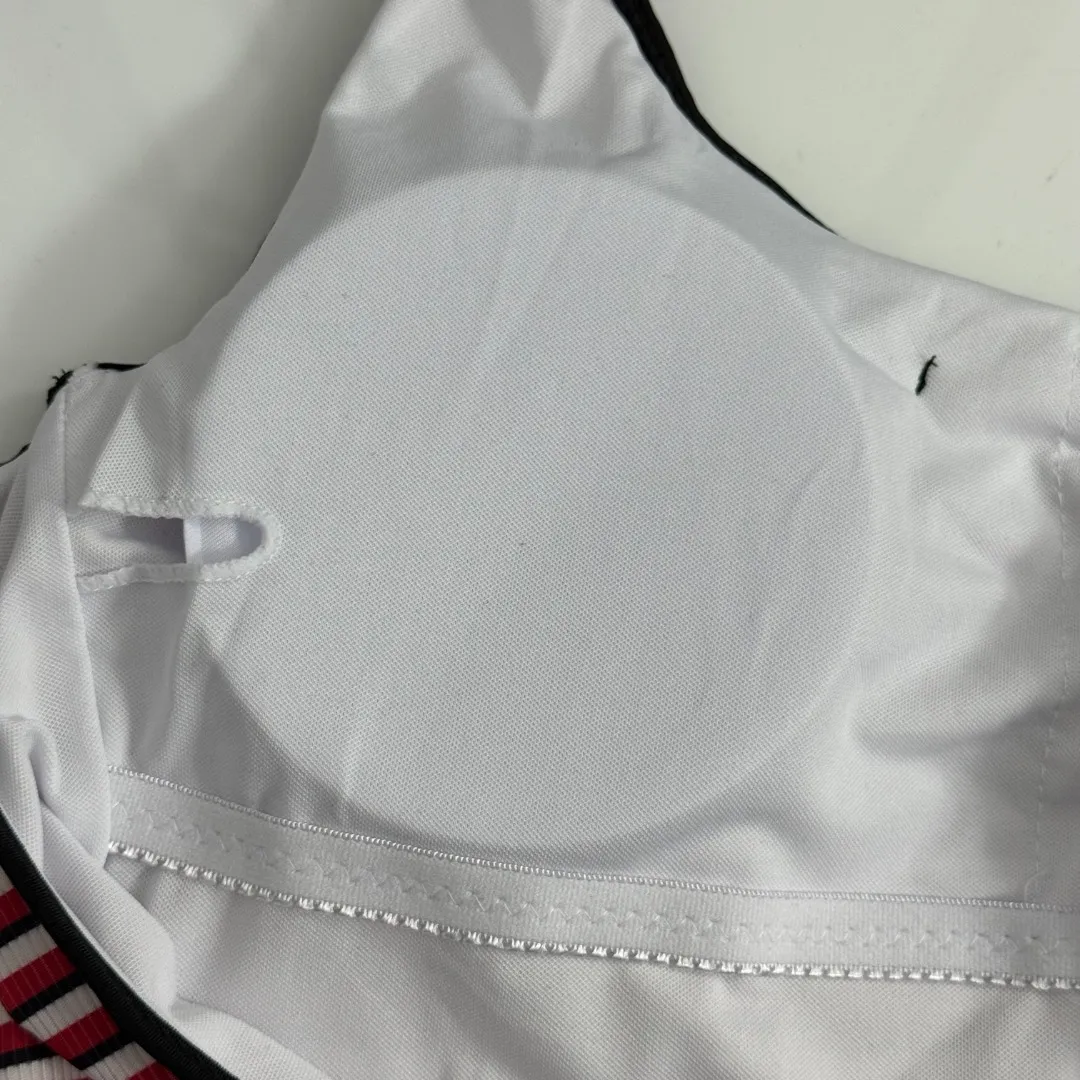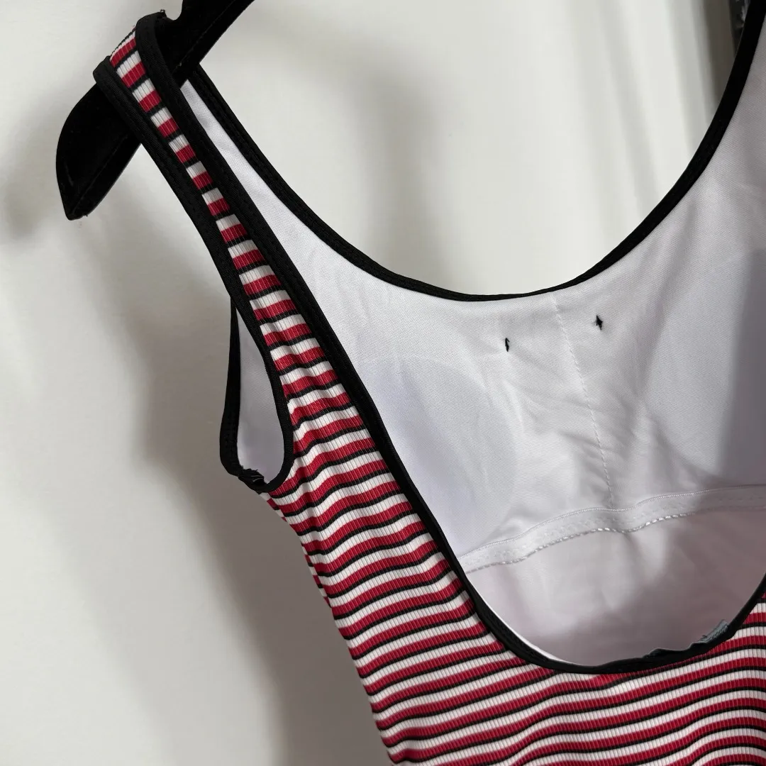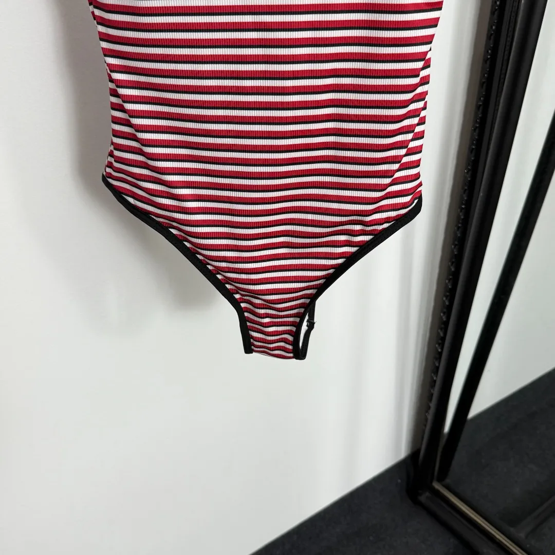Prada新款ロゴ三角マーク赤色ストライプワンピース水着