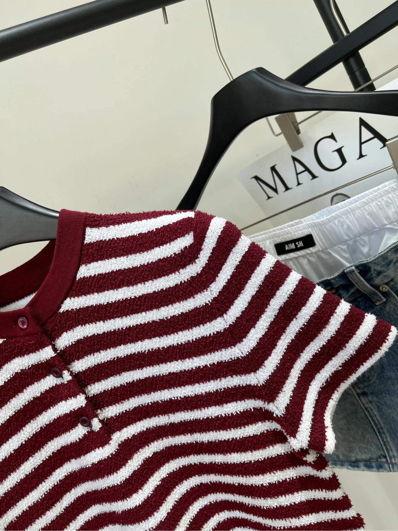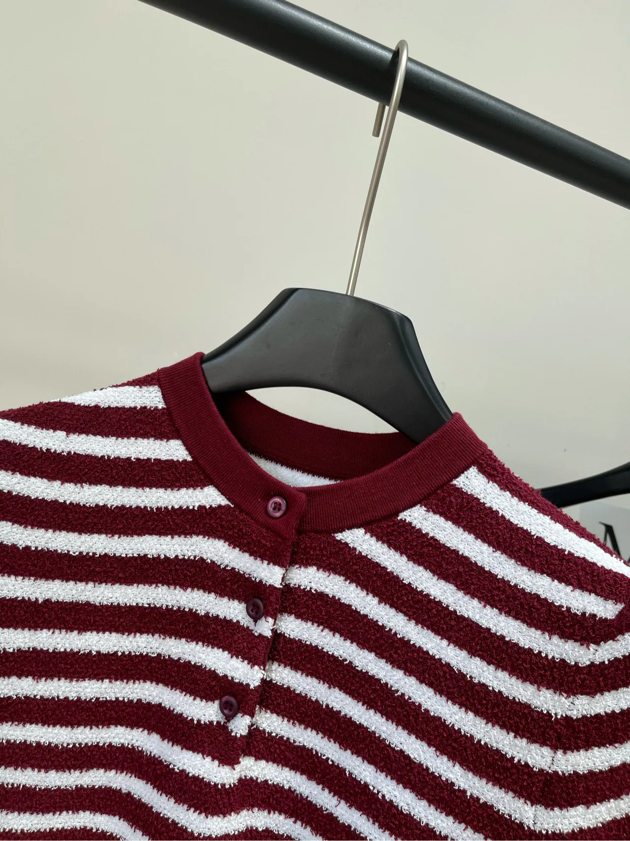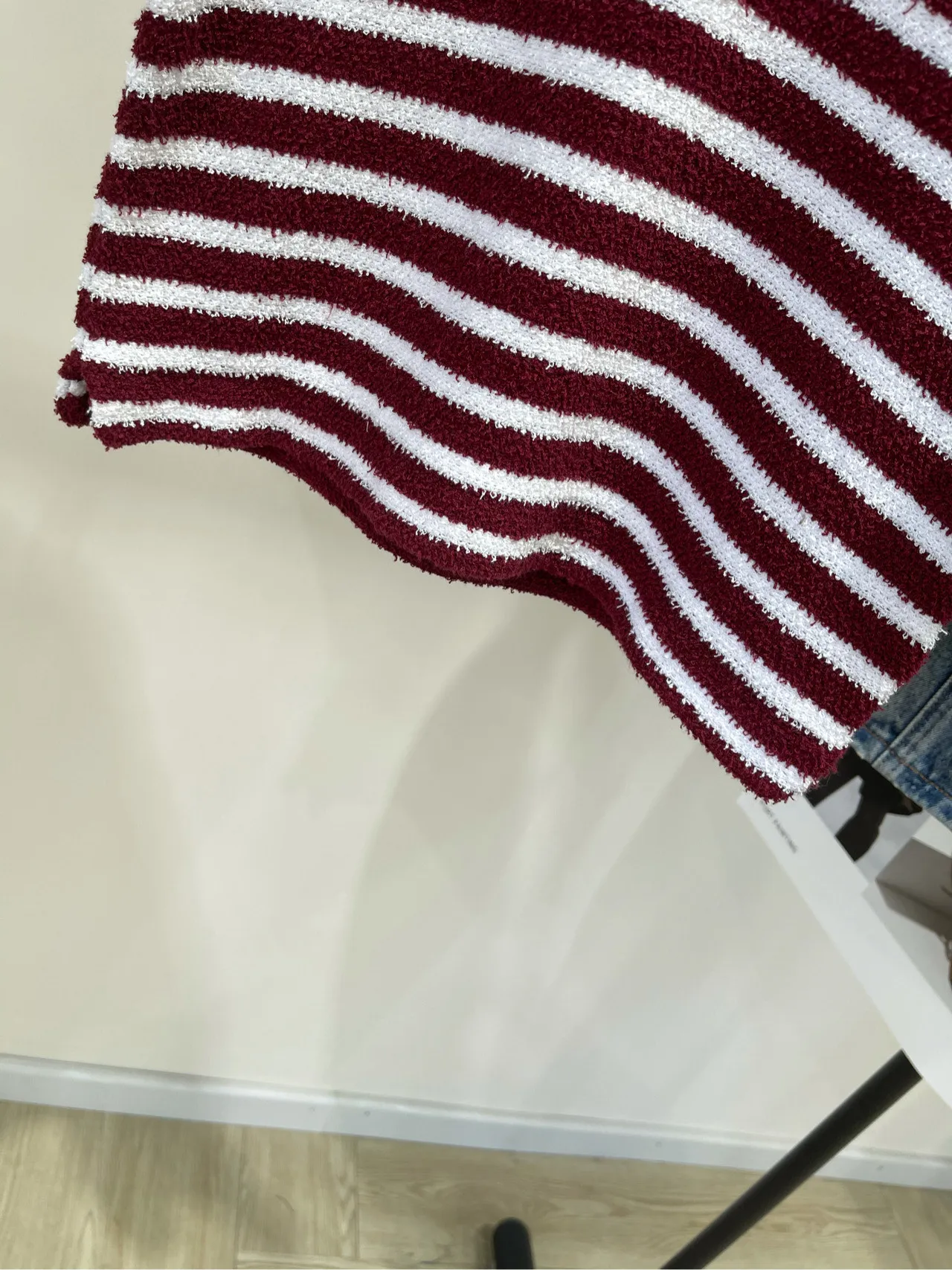 ワインレッドと白のストライプデザイン