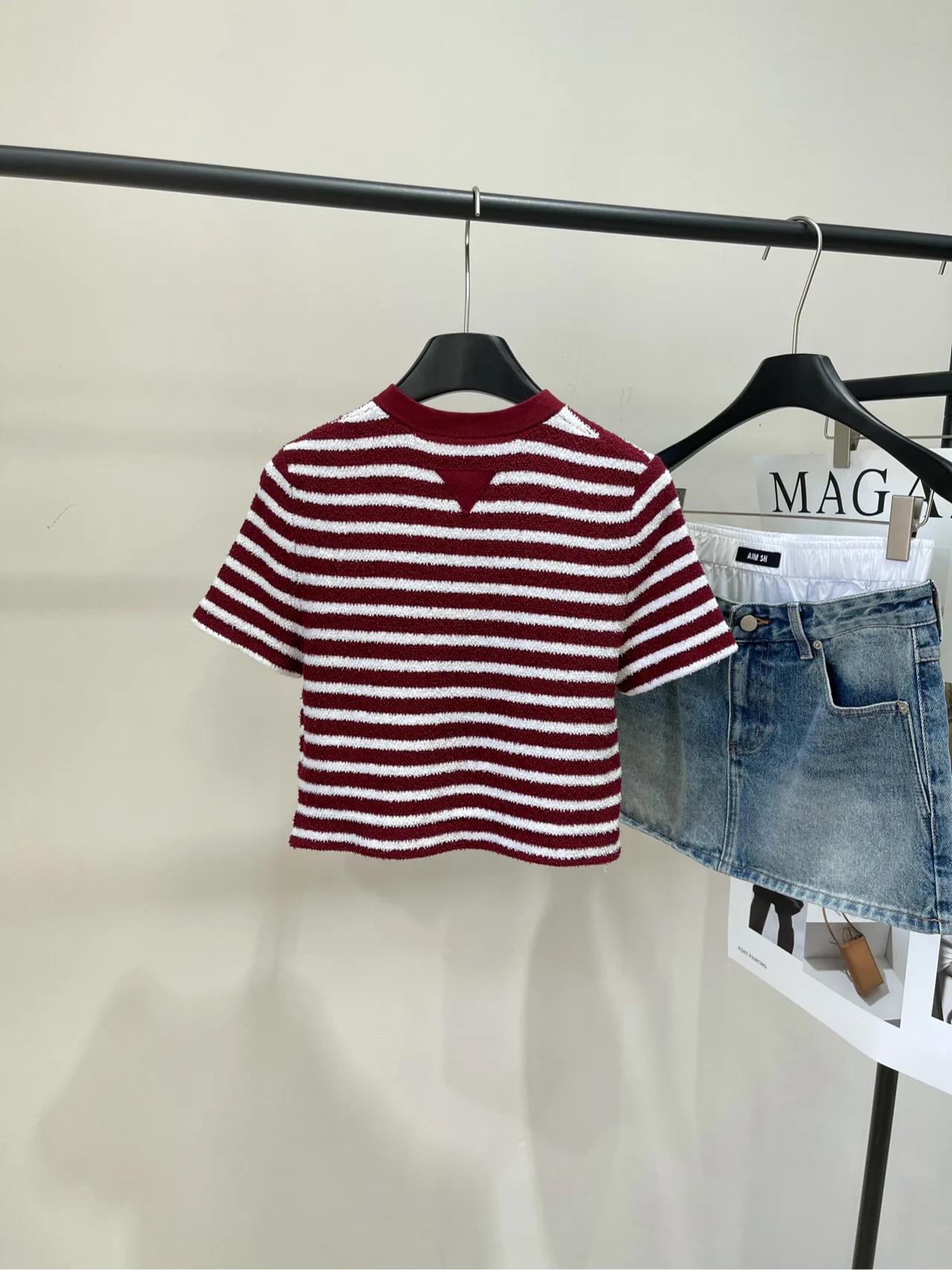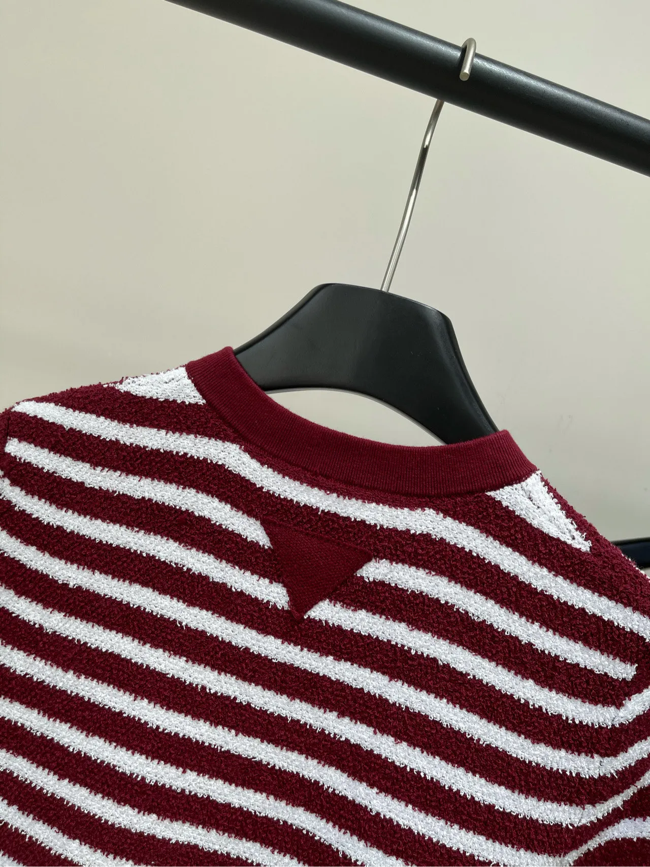 Prada新作ワインレッドストライプ半袖Tシャツ