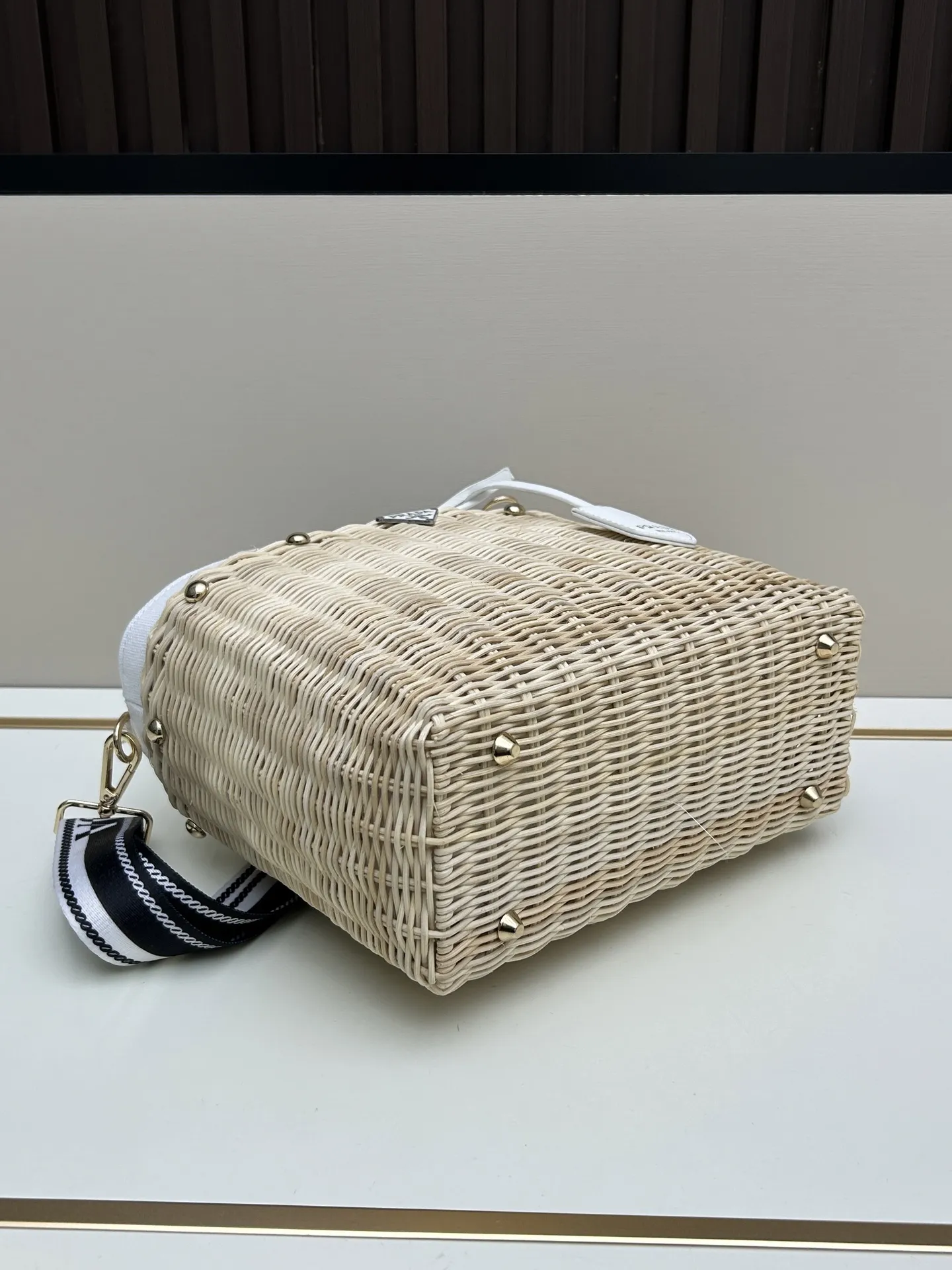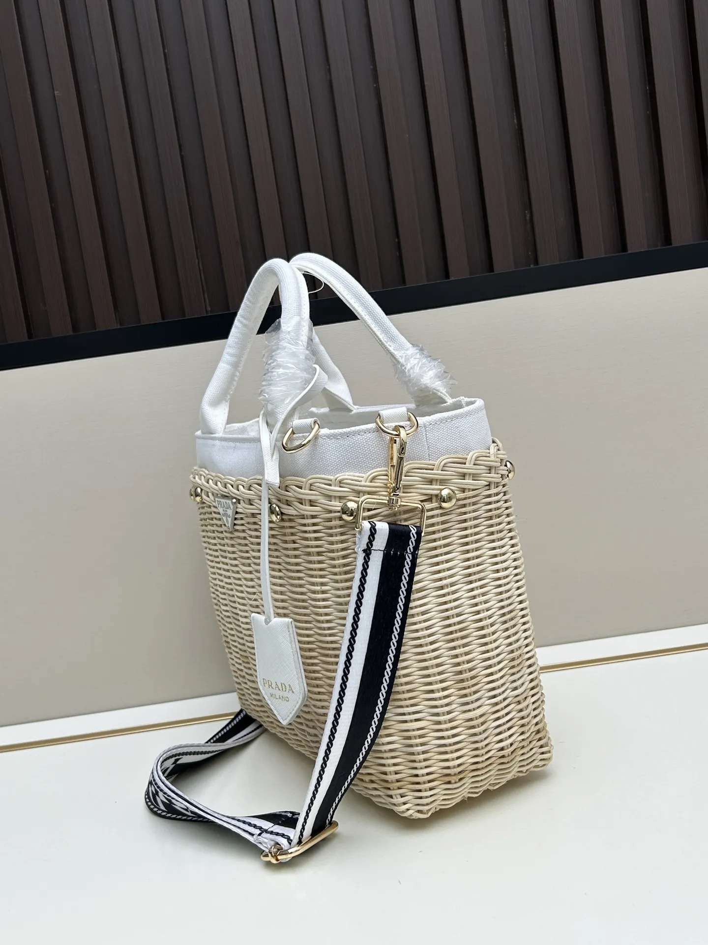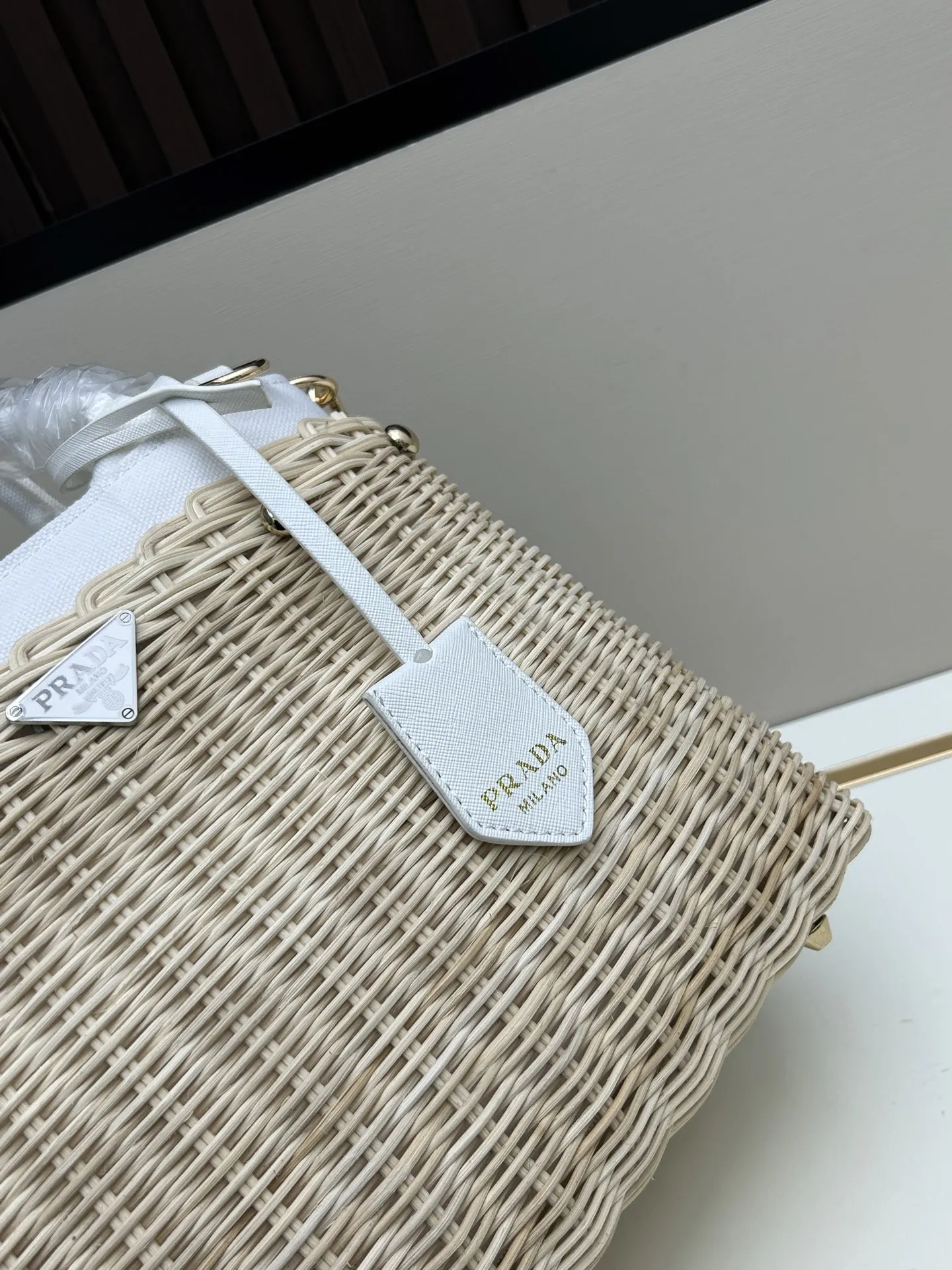 プラダのホワイトストローバッグは、度假や撮影に最適なファッショナブルなアイテムです。パームリーフとレザーで編み込まれたデザインで、高品質の金具とクラシックなロゴが特徴です。手提げと肩掛けの両用が可能で、専門店品質の仕上げが施されています。サイズは26×22×12cmで、型番は2530です。このような高品質なアイテムをお探しの方には、N級品もおすすめです。