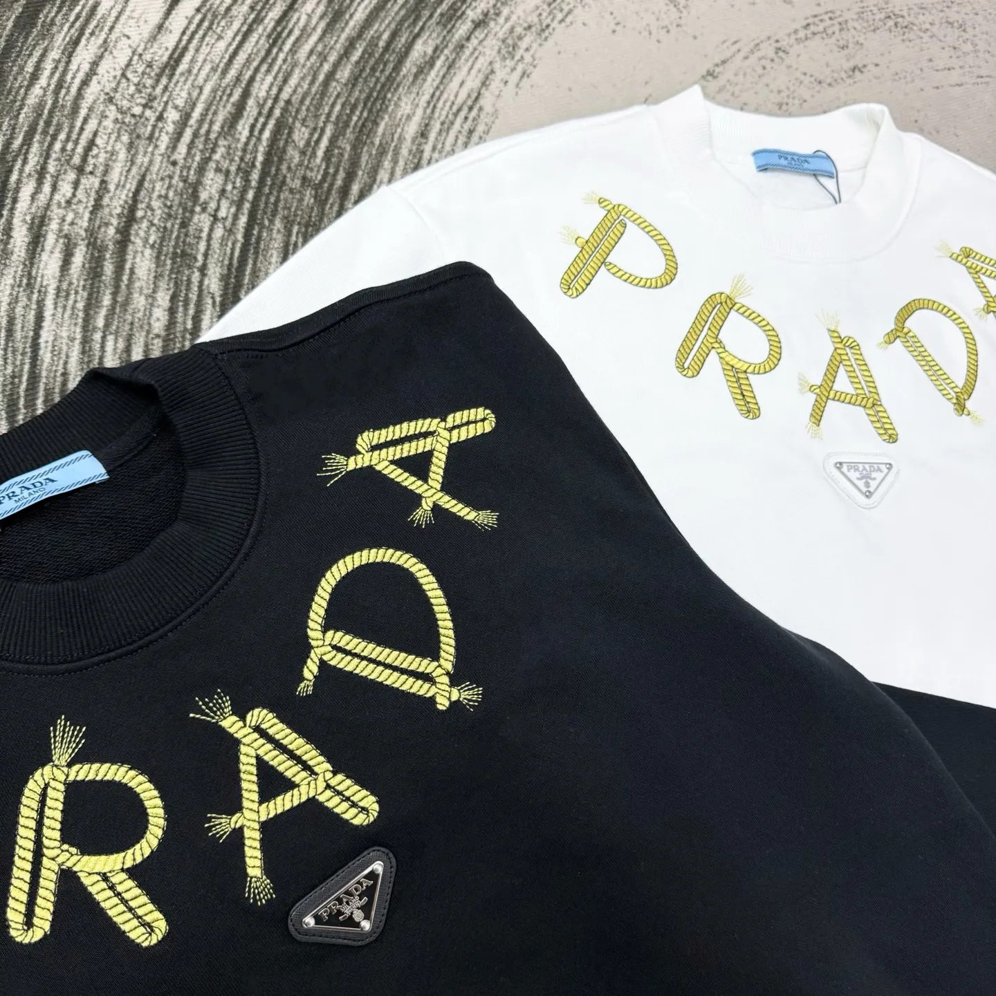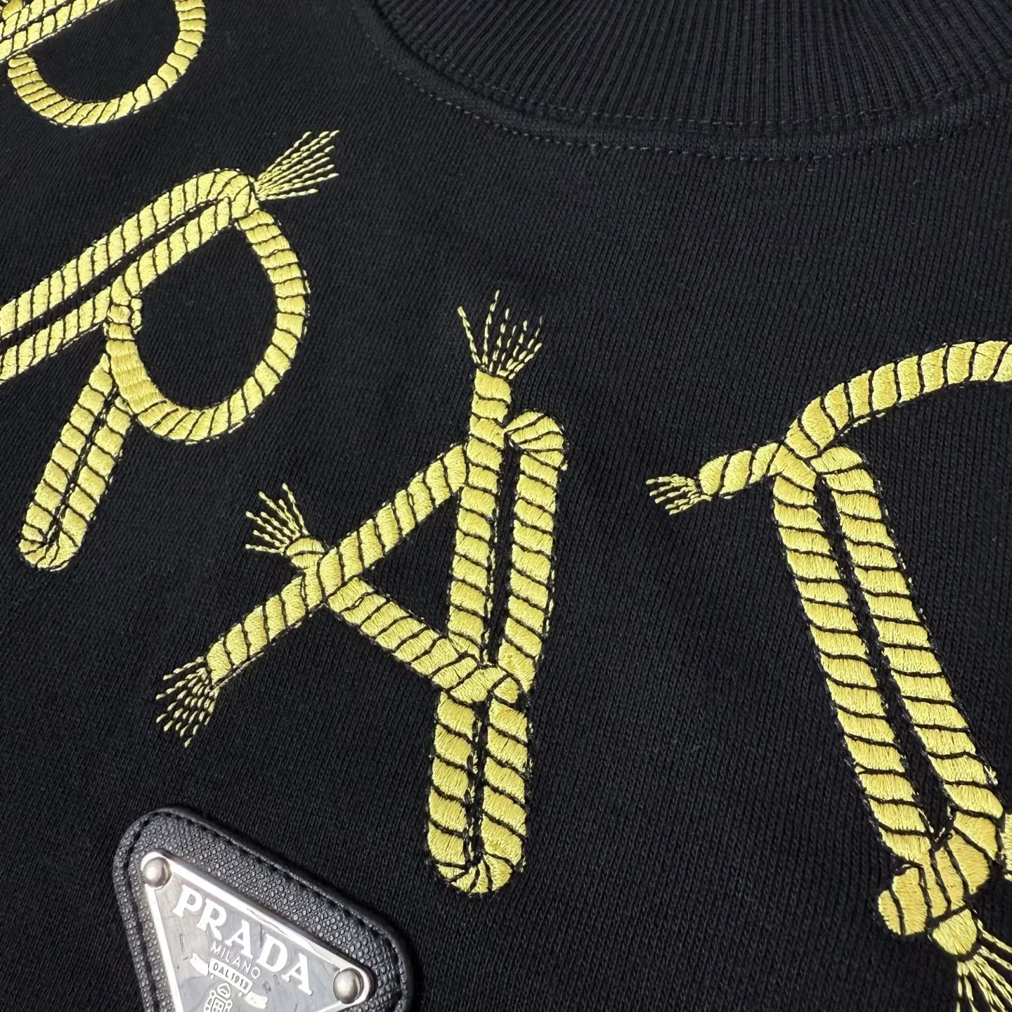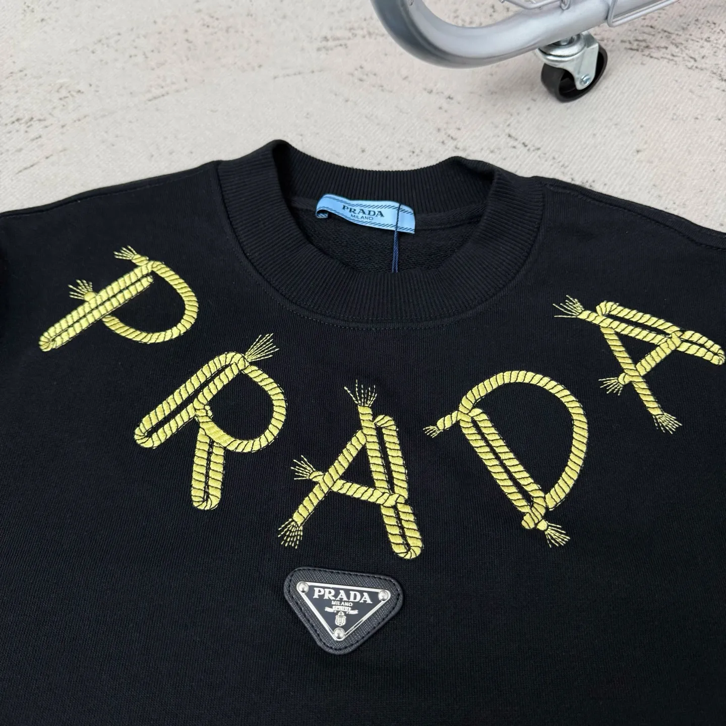 Prada 2025秋冬新しい黒のロゴ刺繍スウェットシャツ