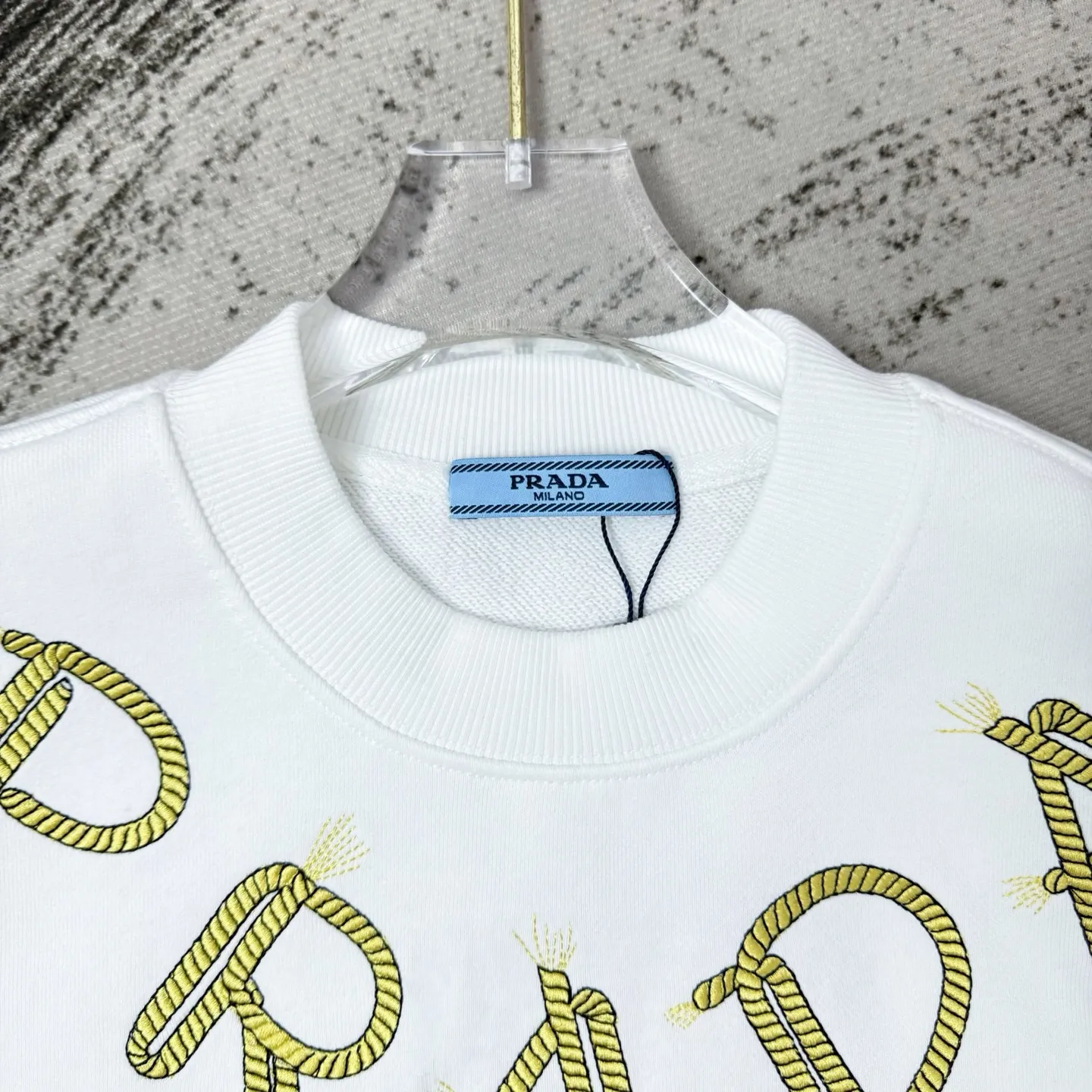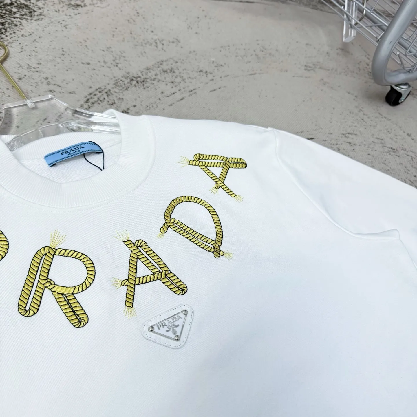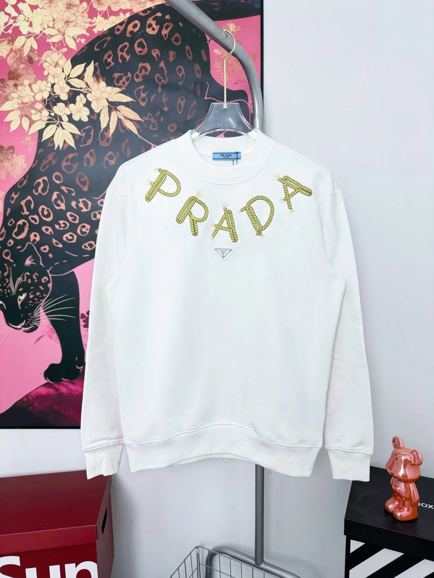 Prada 2025秋冬新しい黒のロゴ刺繍スウェットシャツ