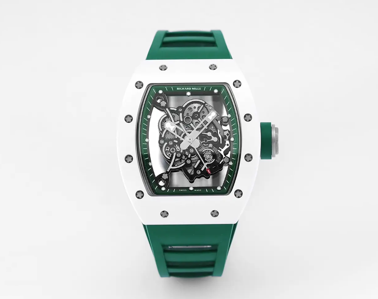 Richard Mille V5版 RM055 白陶 緑色ストラップ腕時計