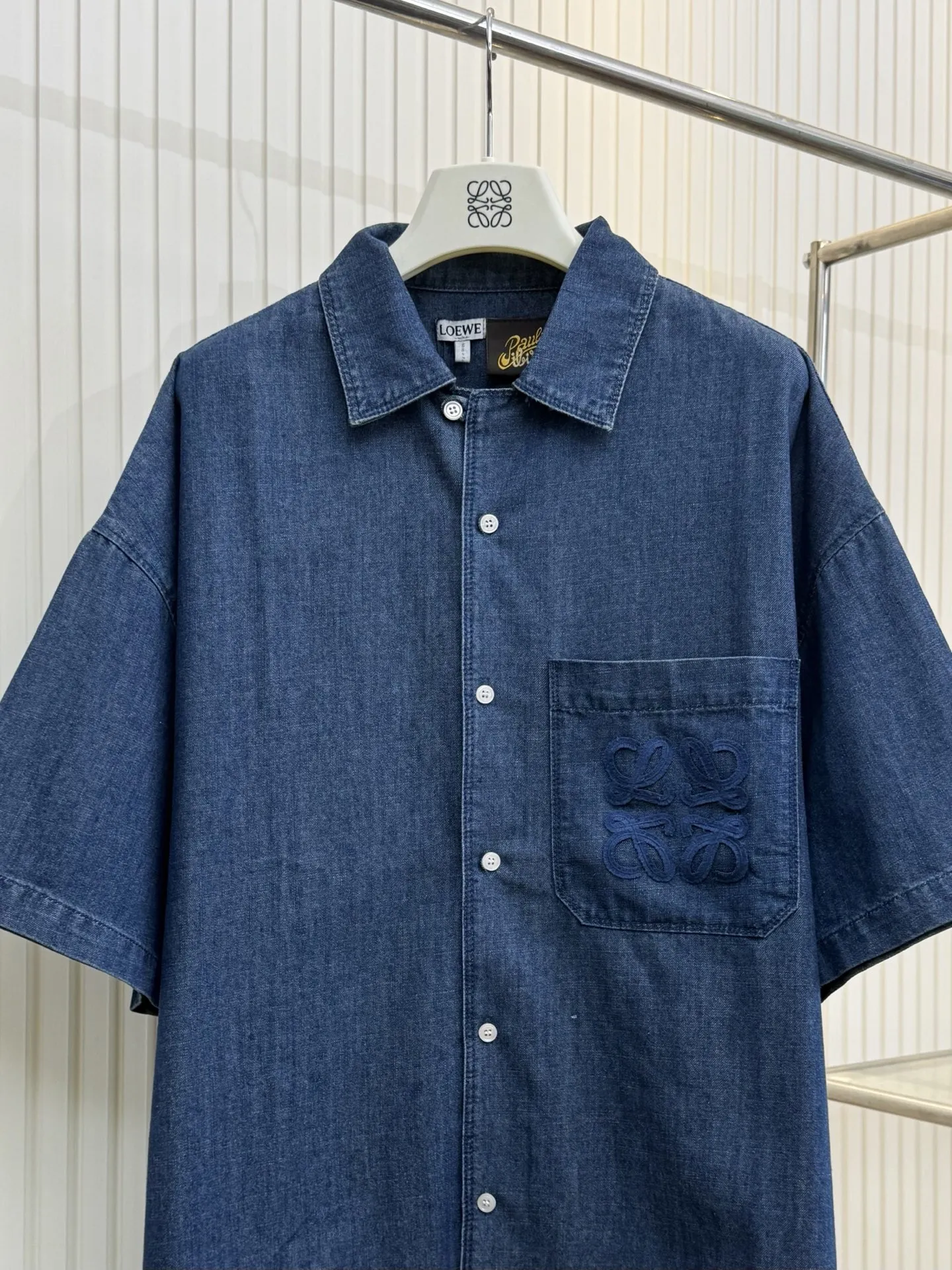 ロエウェの2025年春夏コレクションから登場した新作の黒デニムシャツです。半袖でリラックスフィットのデザインが特徴的。フロントはボタン留めで、左胸ポケットにはブランドの象徴的な刺繍が施されています。高品質なデニム素材を使用し、日常から特別なシーンまで幅広く着用可能です。類似のスタイルをお探しの方には、スーパー コピーのアイテムもおすすめです。