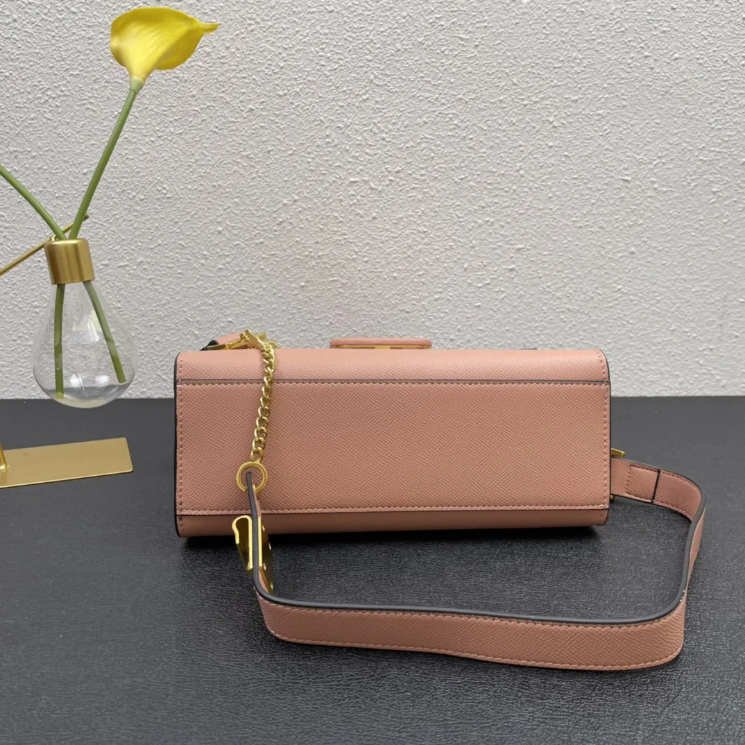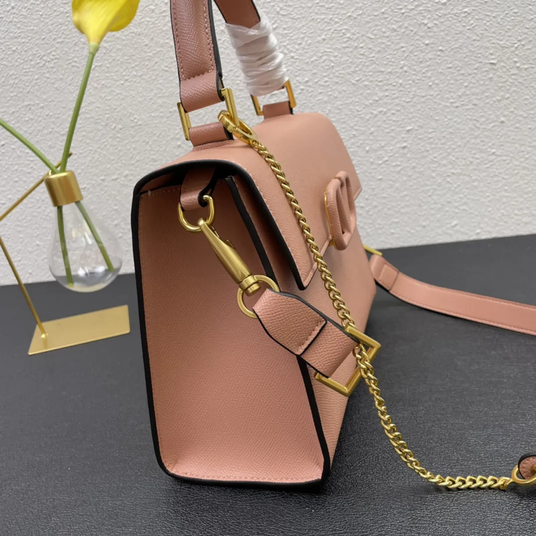 Valentino GaravaniのVSLINGピンクショルダーバッグは、ランウェイモデルで、3WAY使用が可能です。レトロなアンティークゴールドのメタルパーツとマグネット開閉式が特徴的。調節可能なチェーンレザーストラップとナッパレザーライニングで高級感を演出。内部には2つのコンパートメントと便利なポケットが付いています。小牛革素材でサイズは25x12x17cmです。このような高品質なデザインをお探しの方には、N級品もおすすめです。