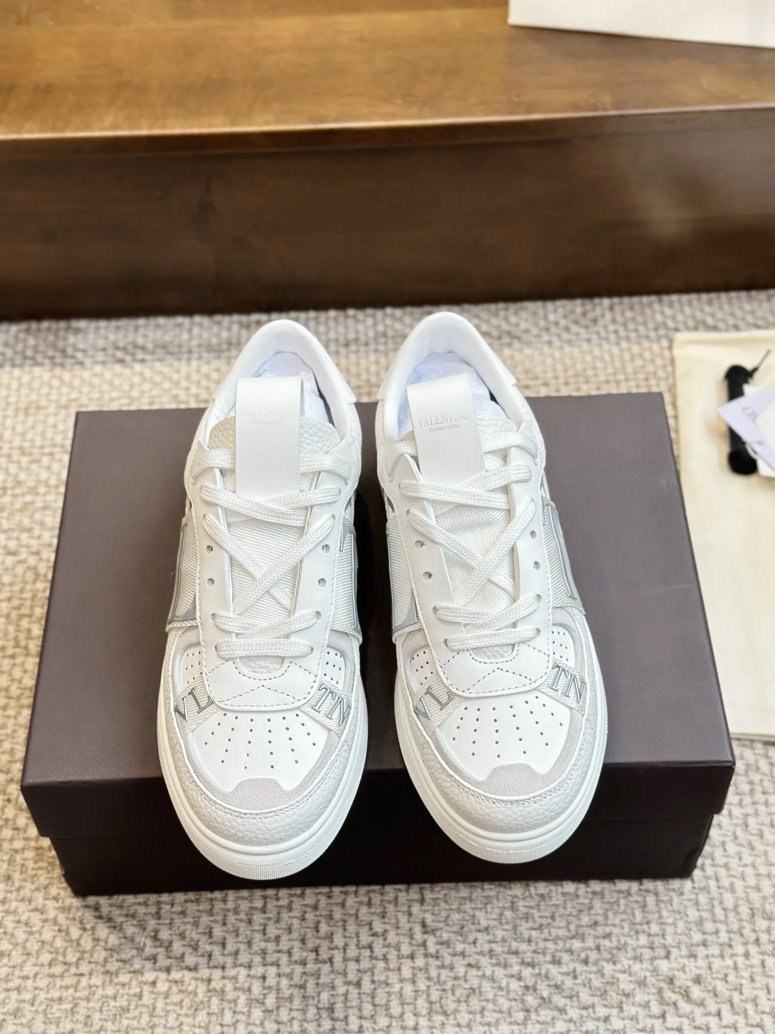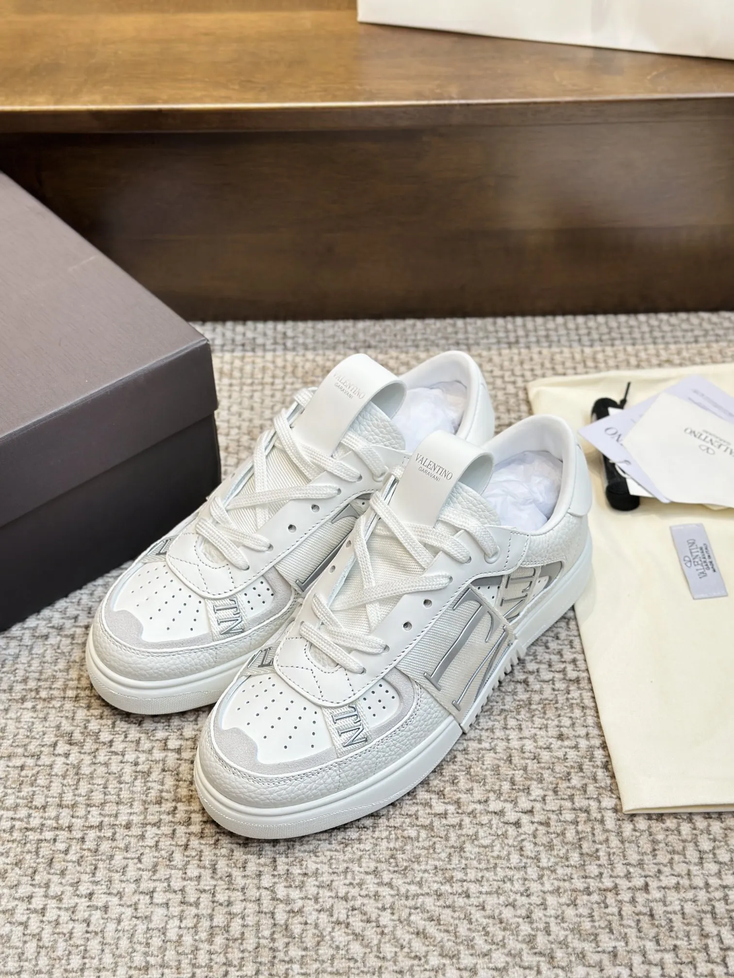 VALENTINOガラヴァーニのホワイトスニーカーは、国内VLTNトップバージョンとして、唯一のオリジナル立体3D効果の織りテープを採用しています。高級品質の販売チャンネルを通じて提供され、正規品と同じミルクホワイトのリッチェパターンの牛革を使用。カップル向けのデザインで、現品販売を行っています。特別な スニーカー スーパー コピー をお探しの方にもおすすめです。