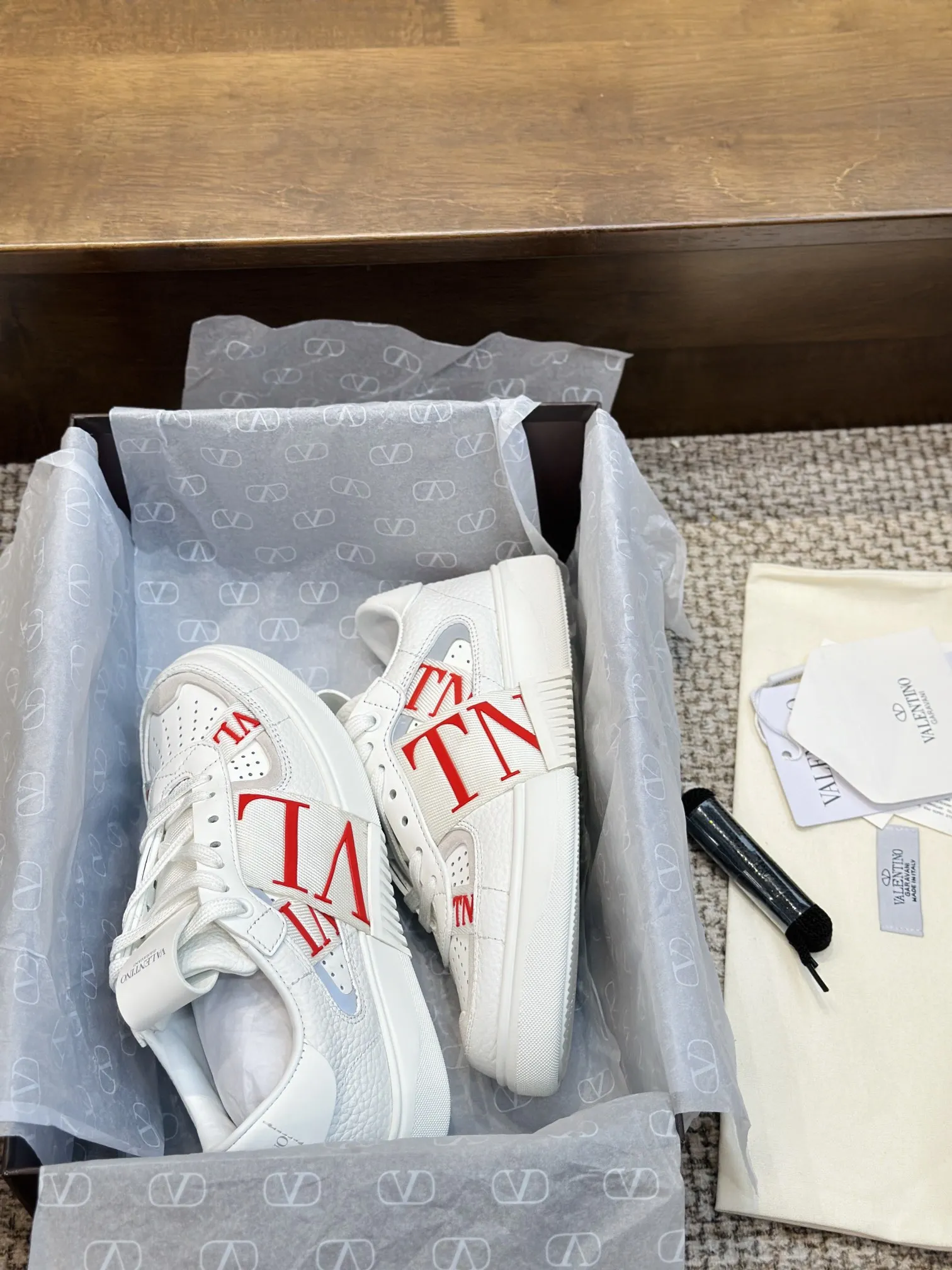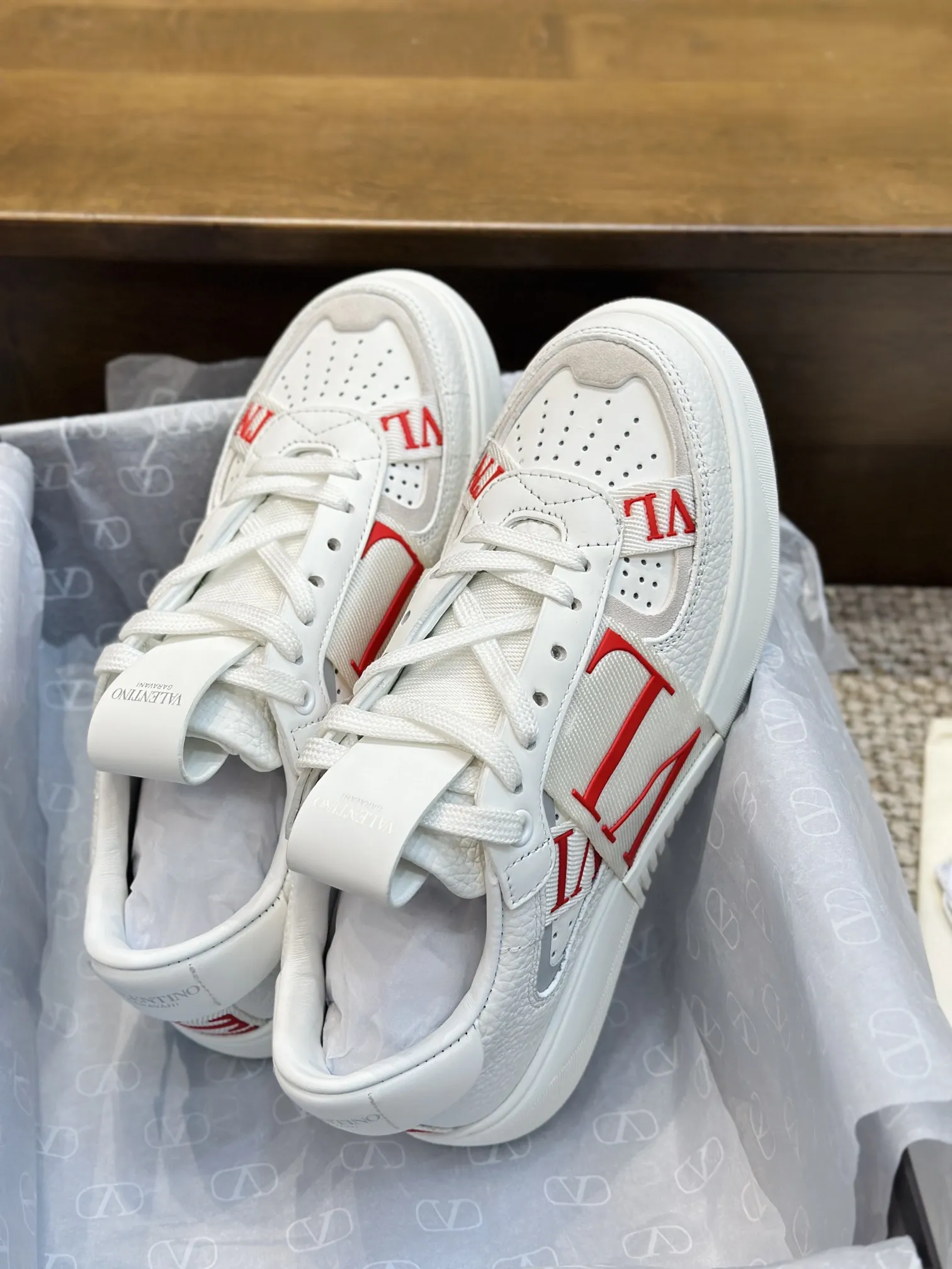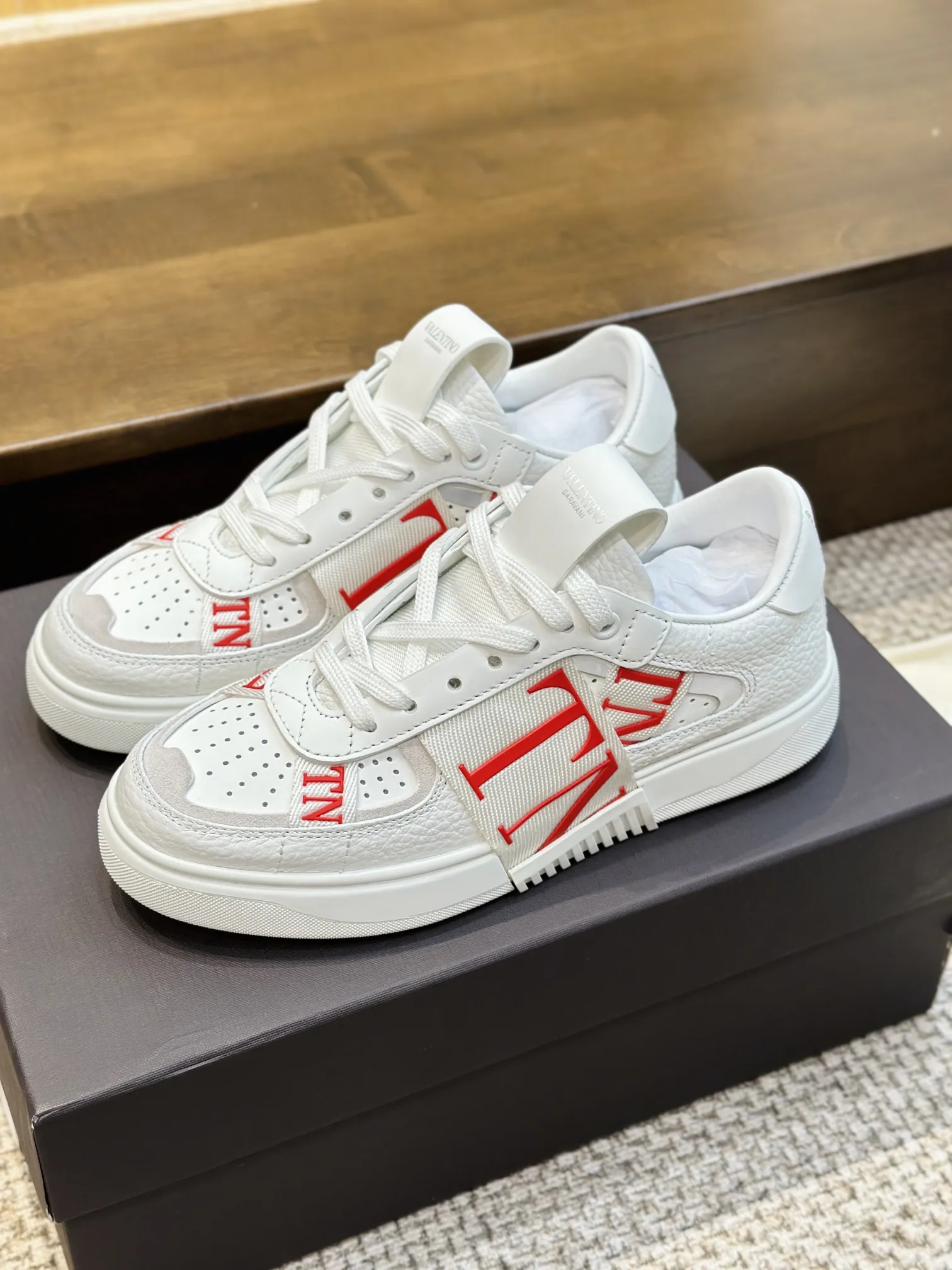 VALENTINOホワイトレッドロゴスニーカー