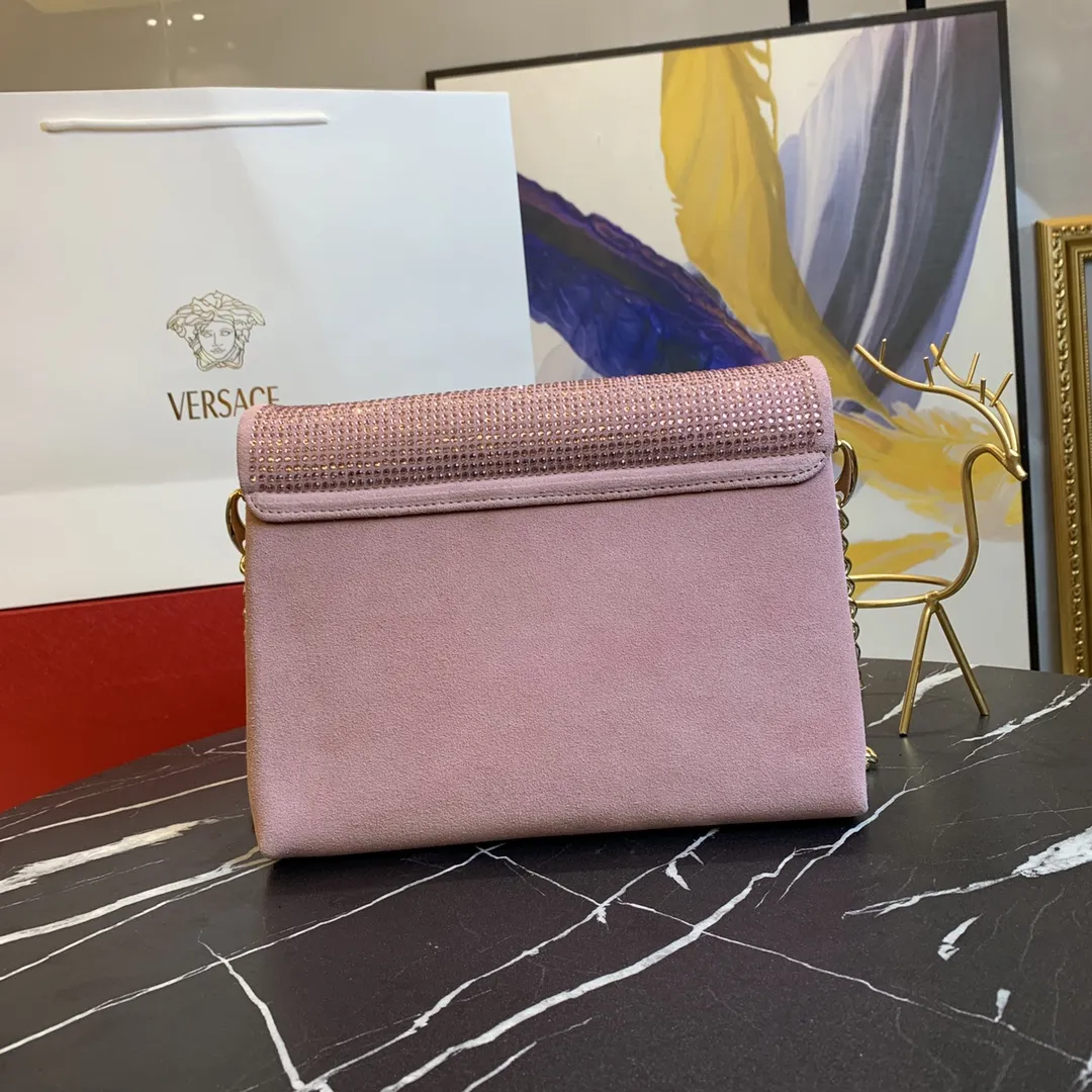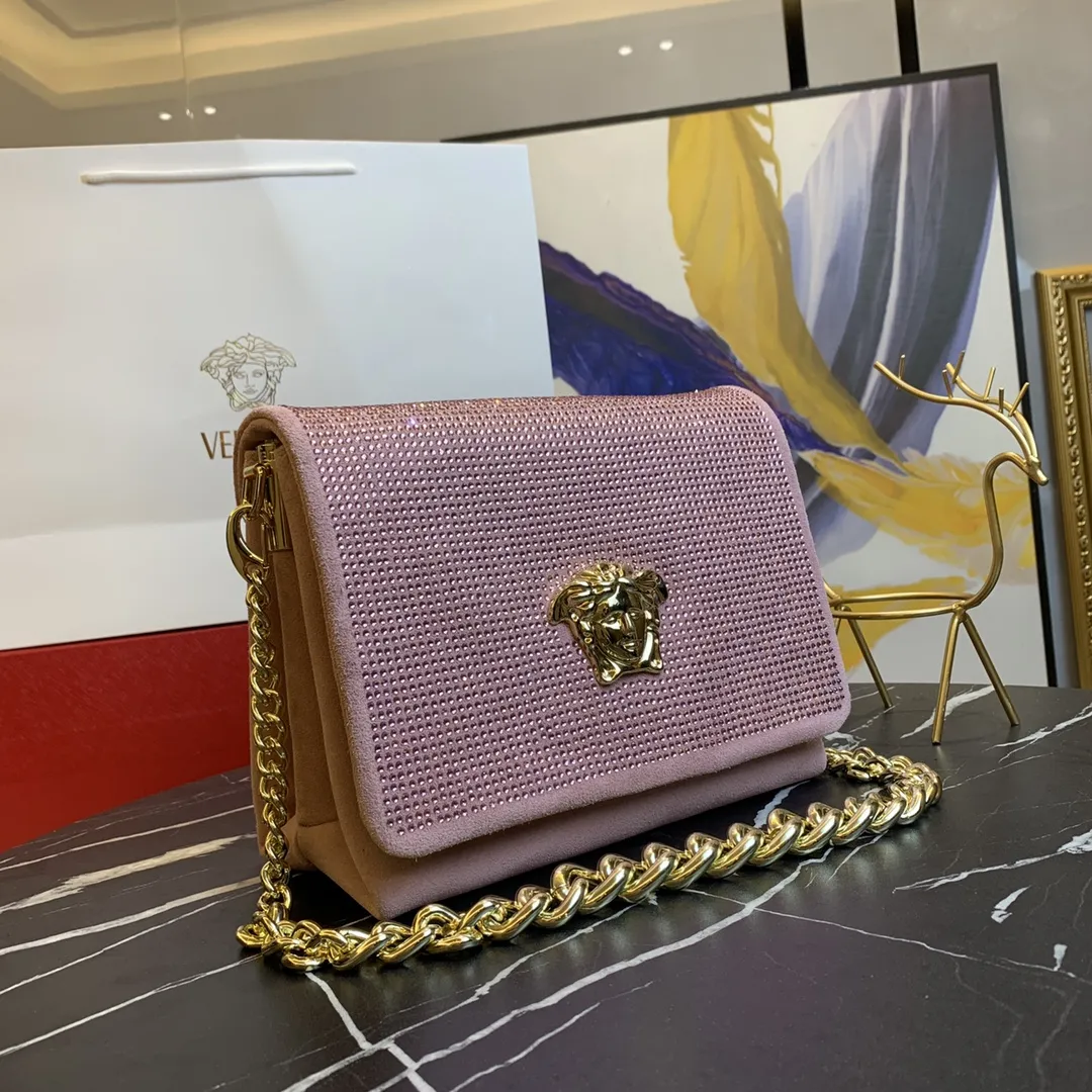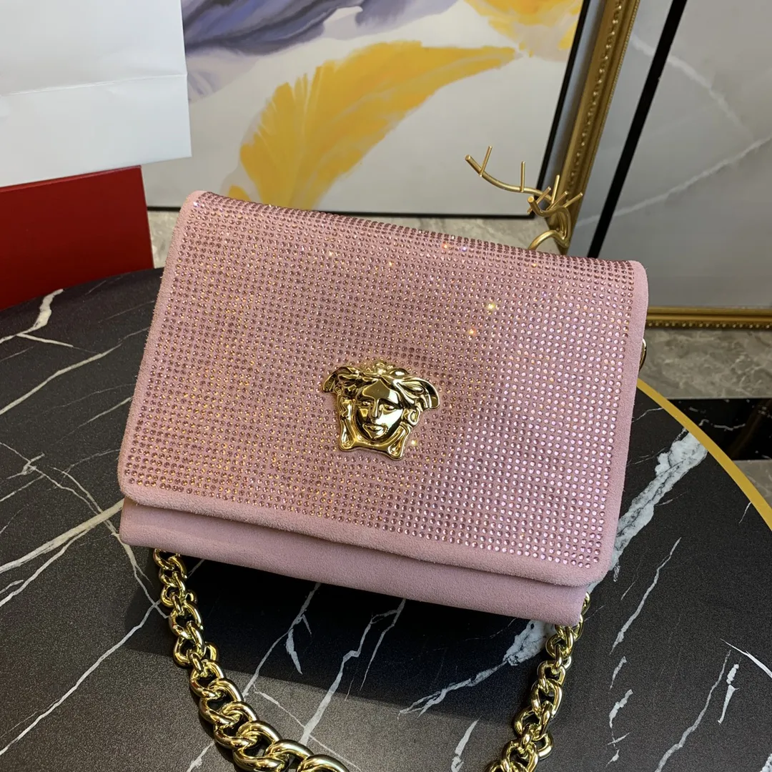 VERSACE ピンク 磨砂皮烫钻款 二隔层チェーンバッグ