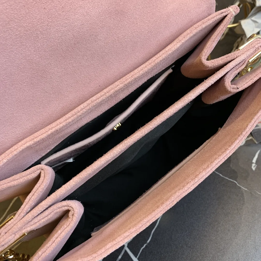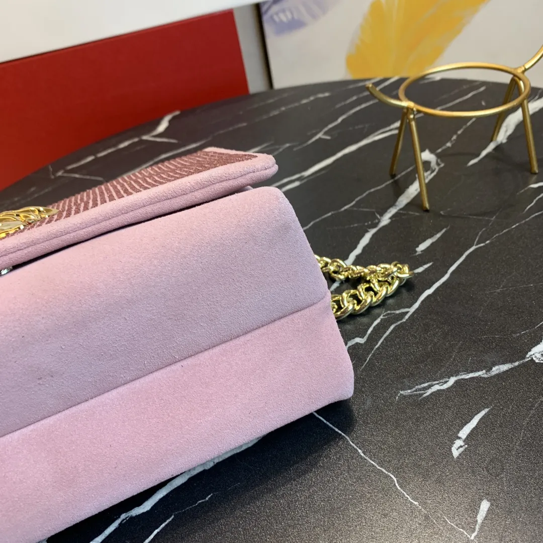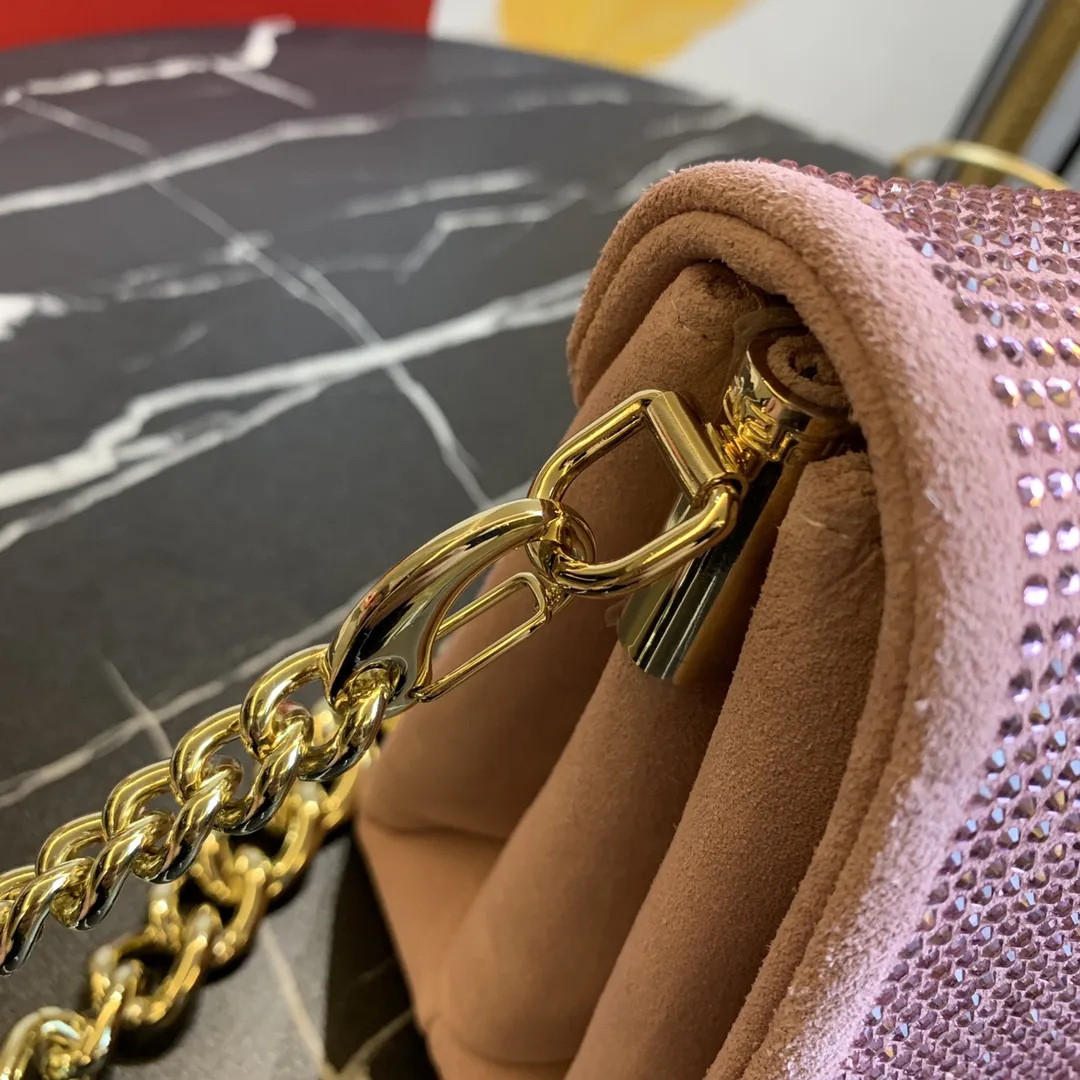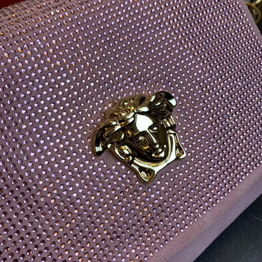 VERSACE ピンク 磨砂皮烫钻款 二隔层チェーンバッグ