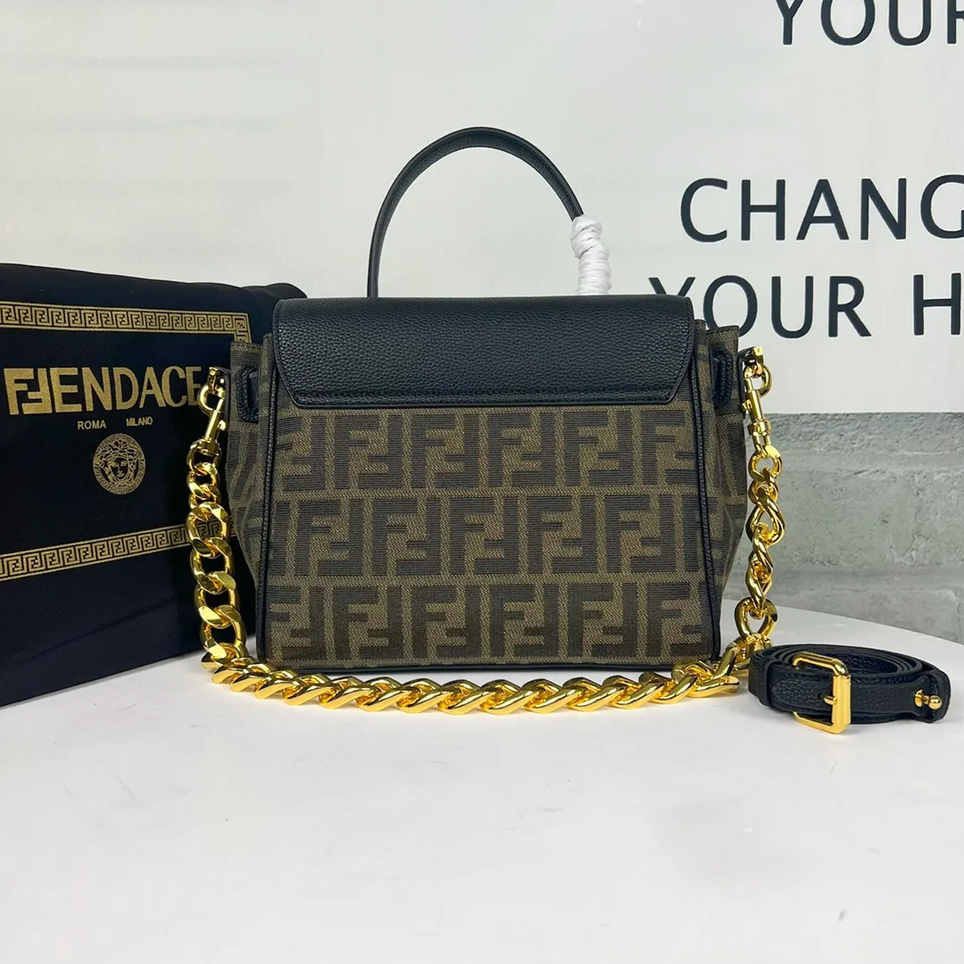 VersaceとFendiのコラボレーションによるLa Medusaシリーズのハンドバッグです。Kim JonesとDonatella Versaceのクリエイティブな交流から生まれたデザインで、Fendace Gold Baroqueプリントを再解釈しています。MedusaプレートとFendiの金具が特徴で、手持ちやショルダーバッグとしても使用可能。サイズは25-15-22cmで、実用的な容量を持ち、エレガントでモダンなラグジュアリーを体現するスーパーコピーバッグです。