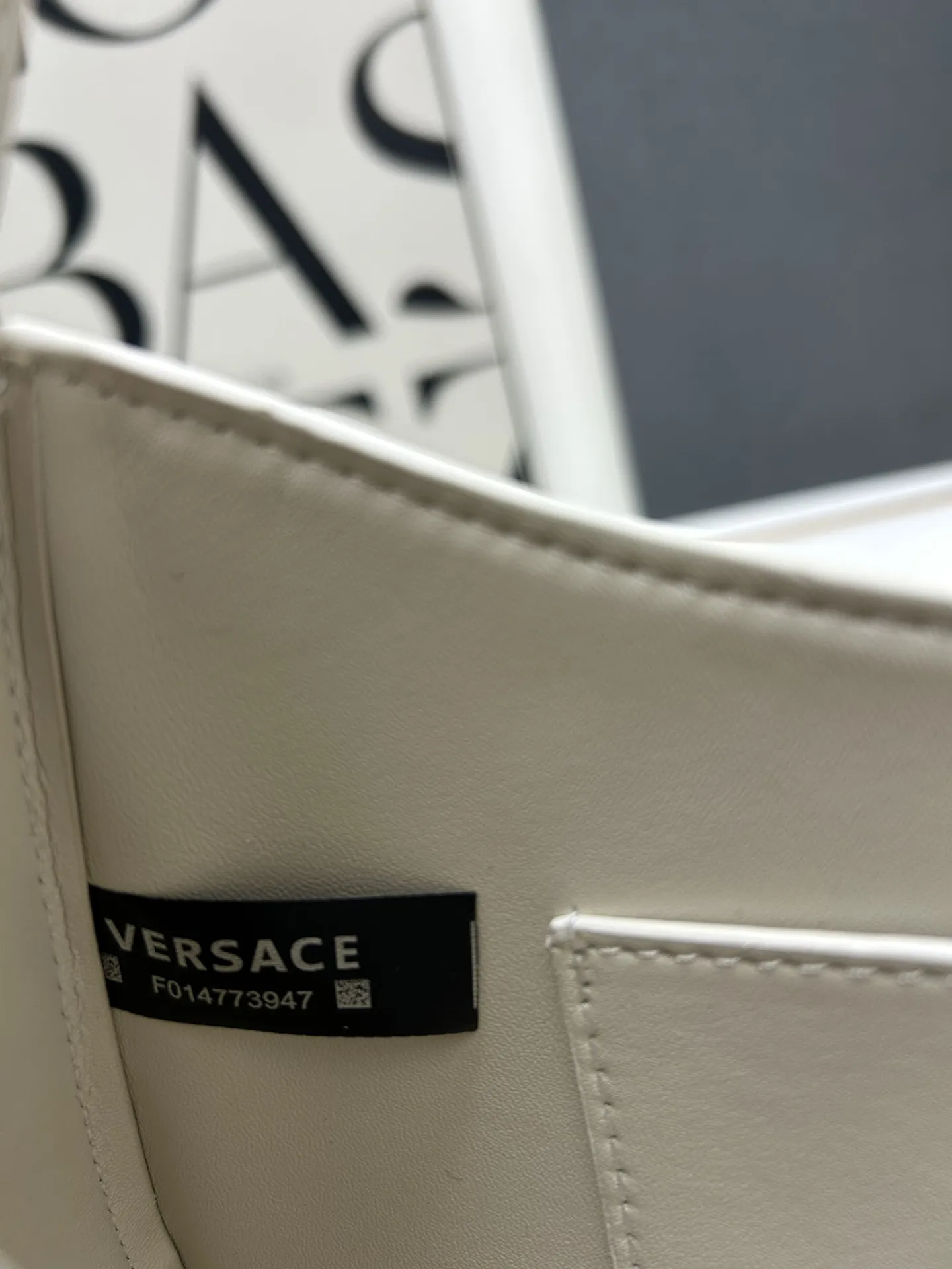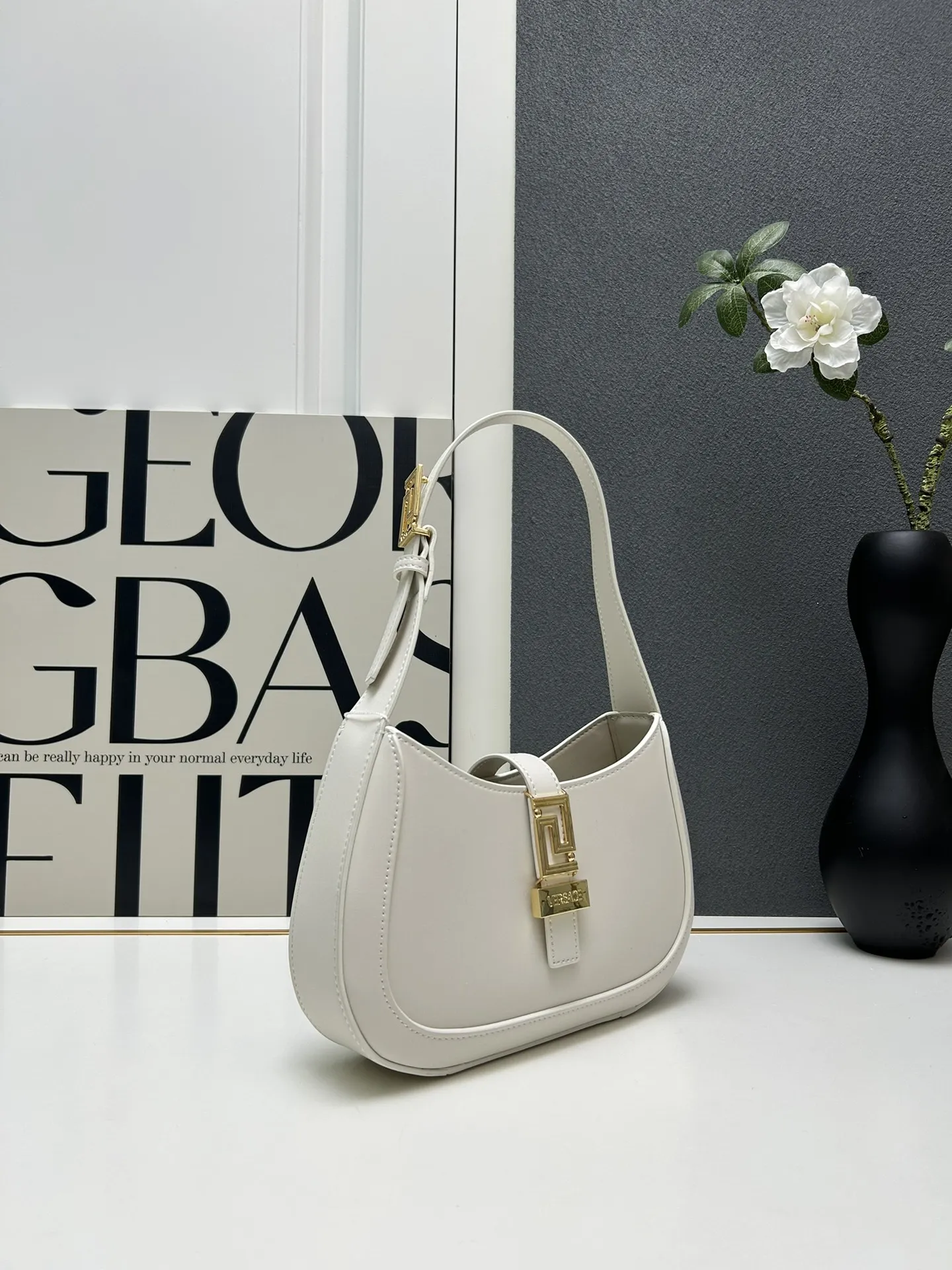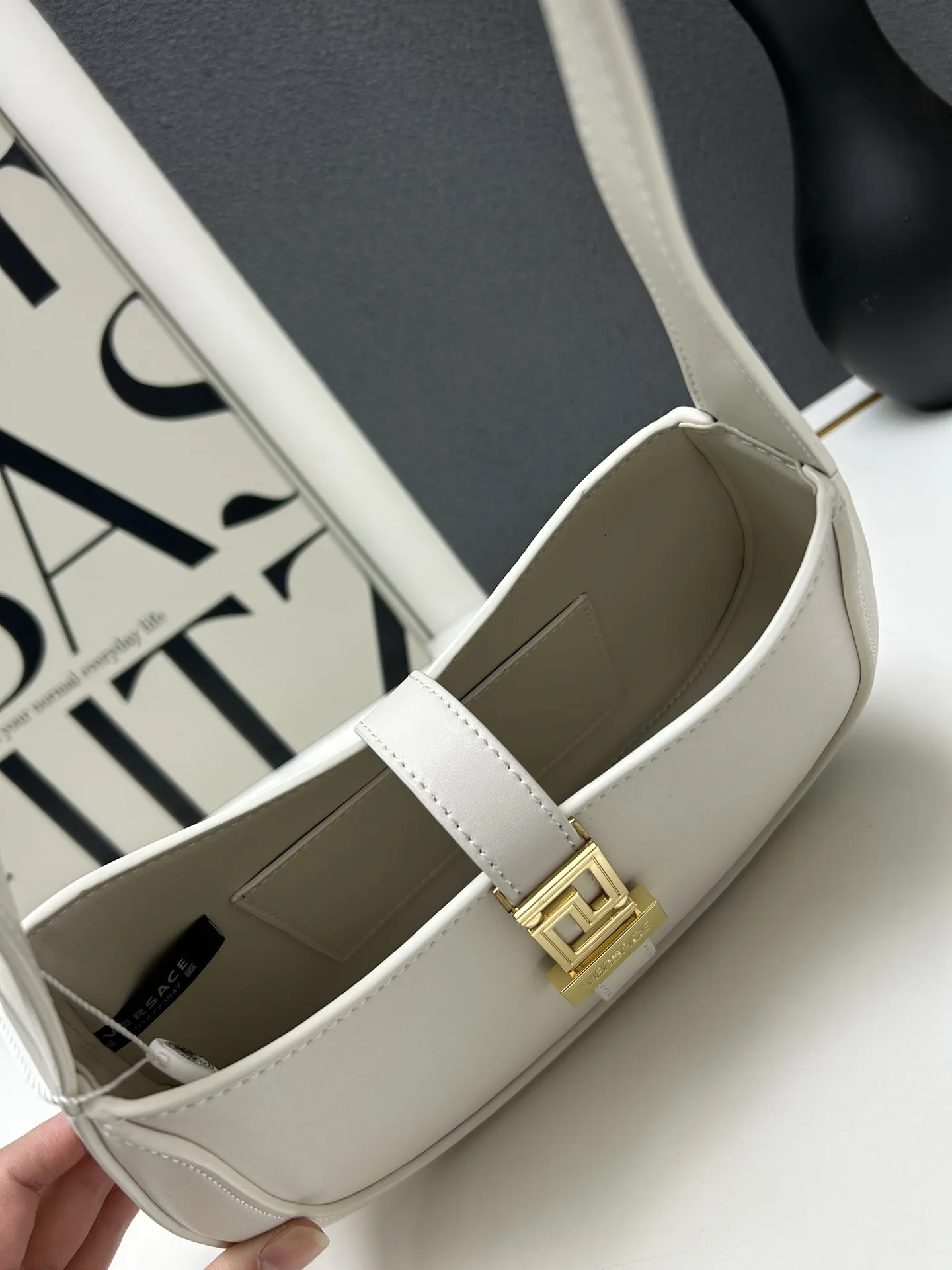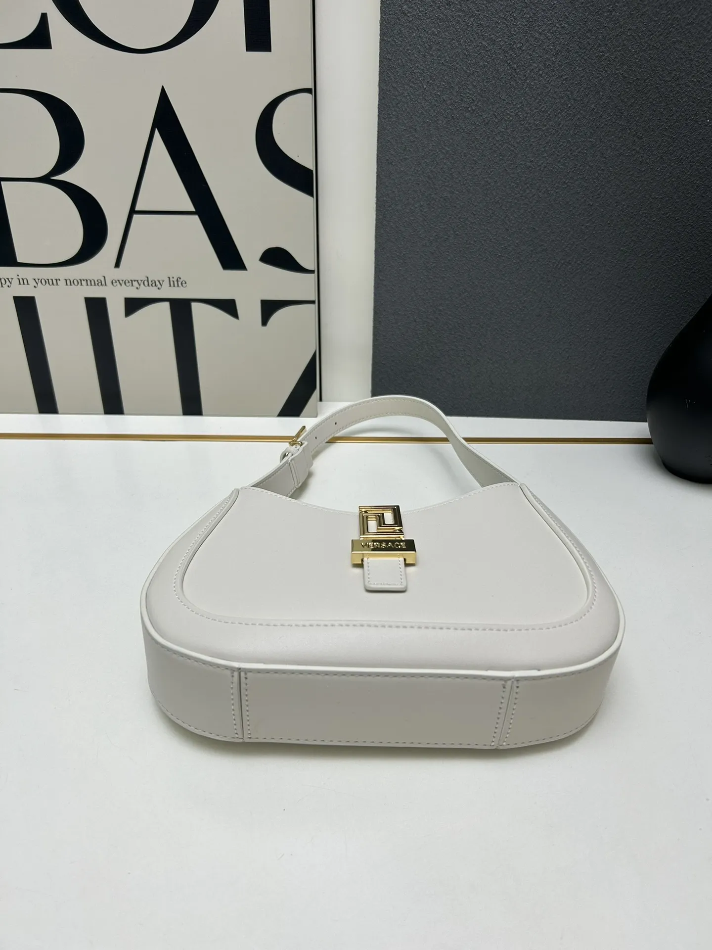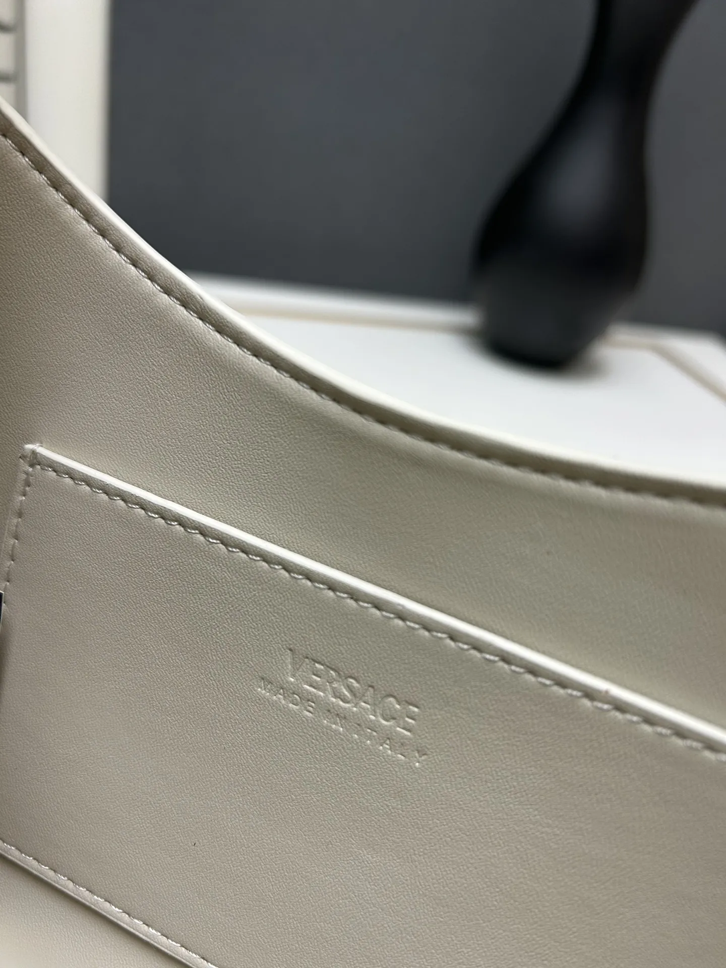 VERSACEの新作腋下包は、ホワイトレザーで上品なデザインが特徴です。牛皮素材を使用し、耐久性と高級感を兼ね備えています。ゴールドのアクセントがエレガントな印象を与えます。サイズは25x13x5cmで、日常使いに最適です。特別な N級品 として、品質にもこだわっています。ギフトボックス付きでプレゼントにも最適です。