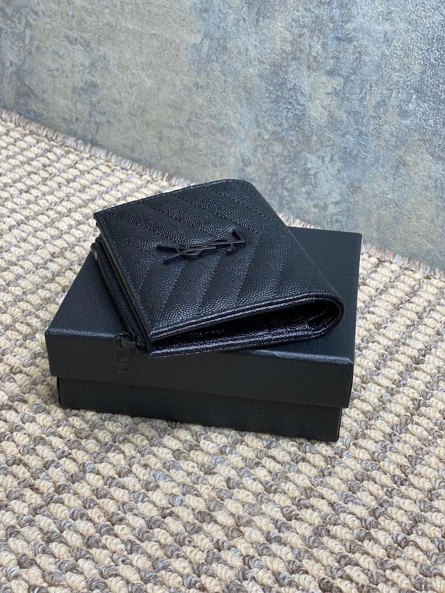 YSL サンローラン キャビアウォレット ブラック キルティング
