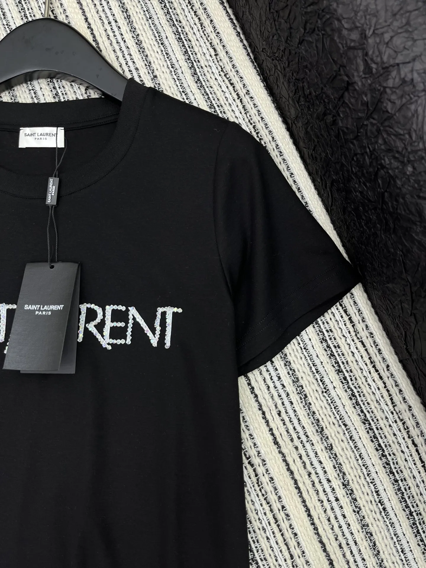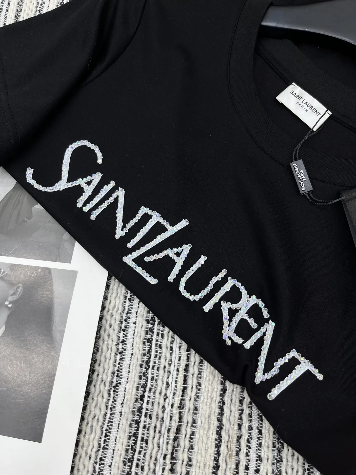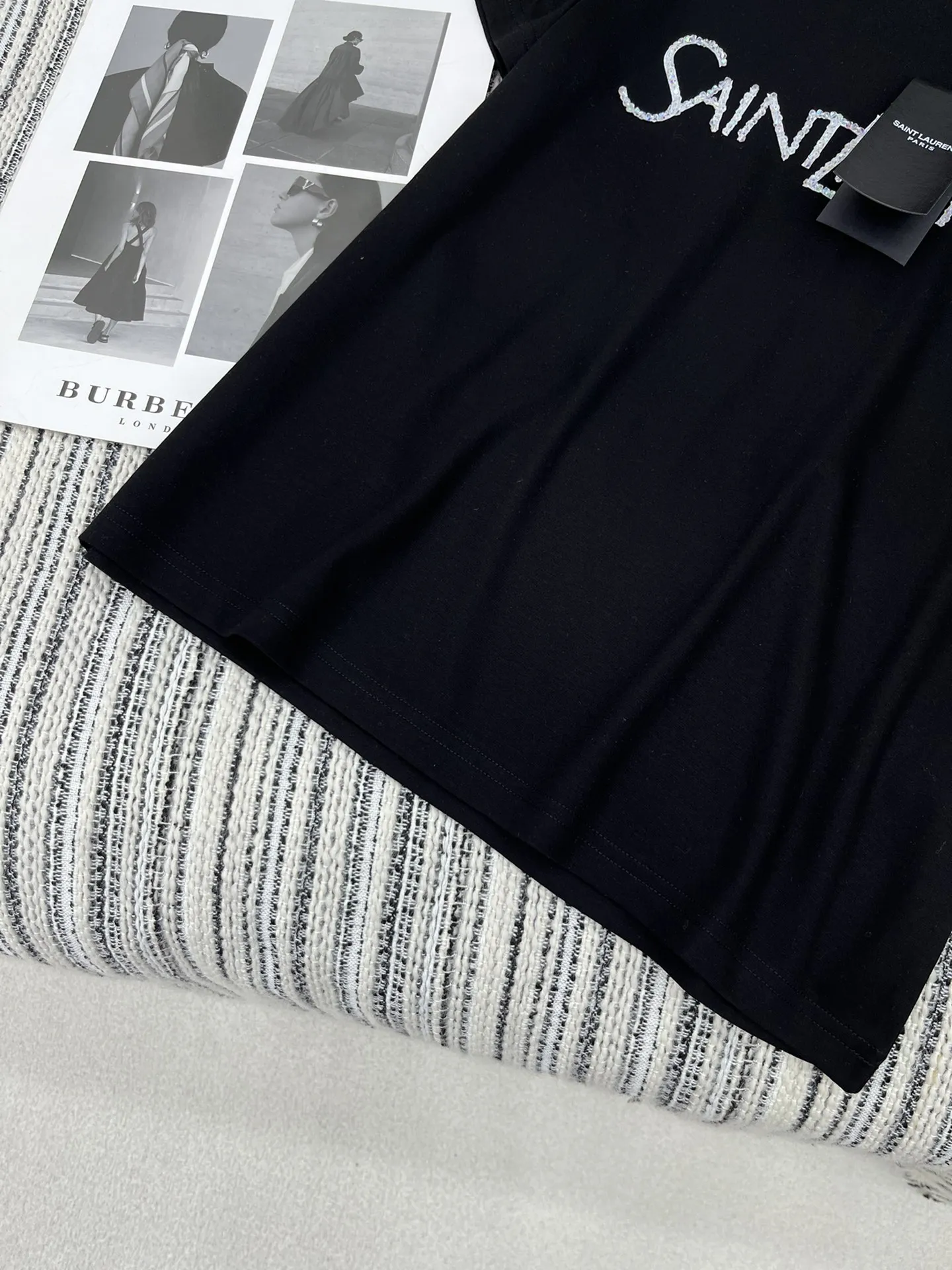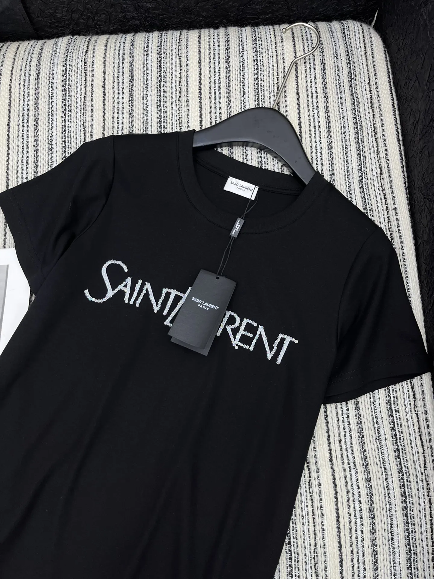 Yves Saint Laurent新作黒色刺繍半袖Tシャツ