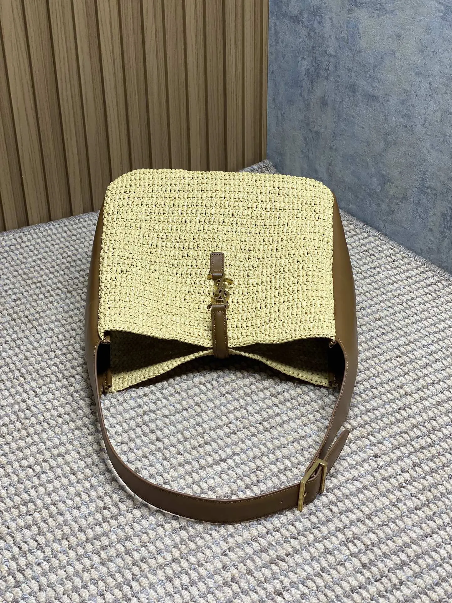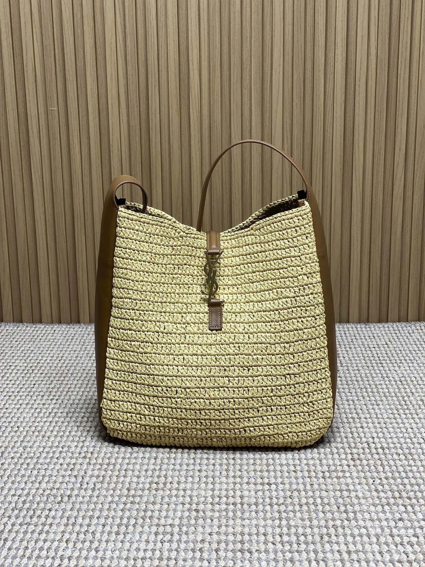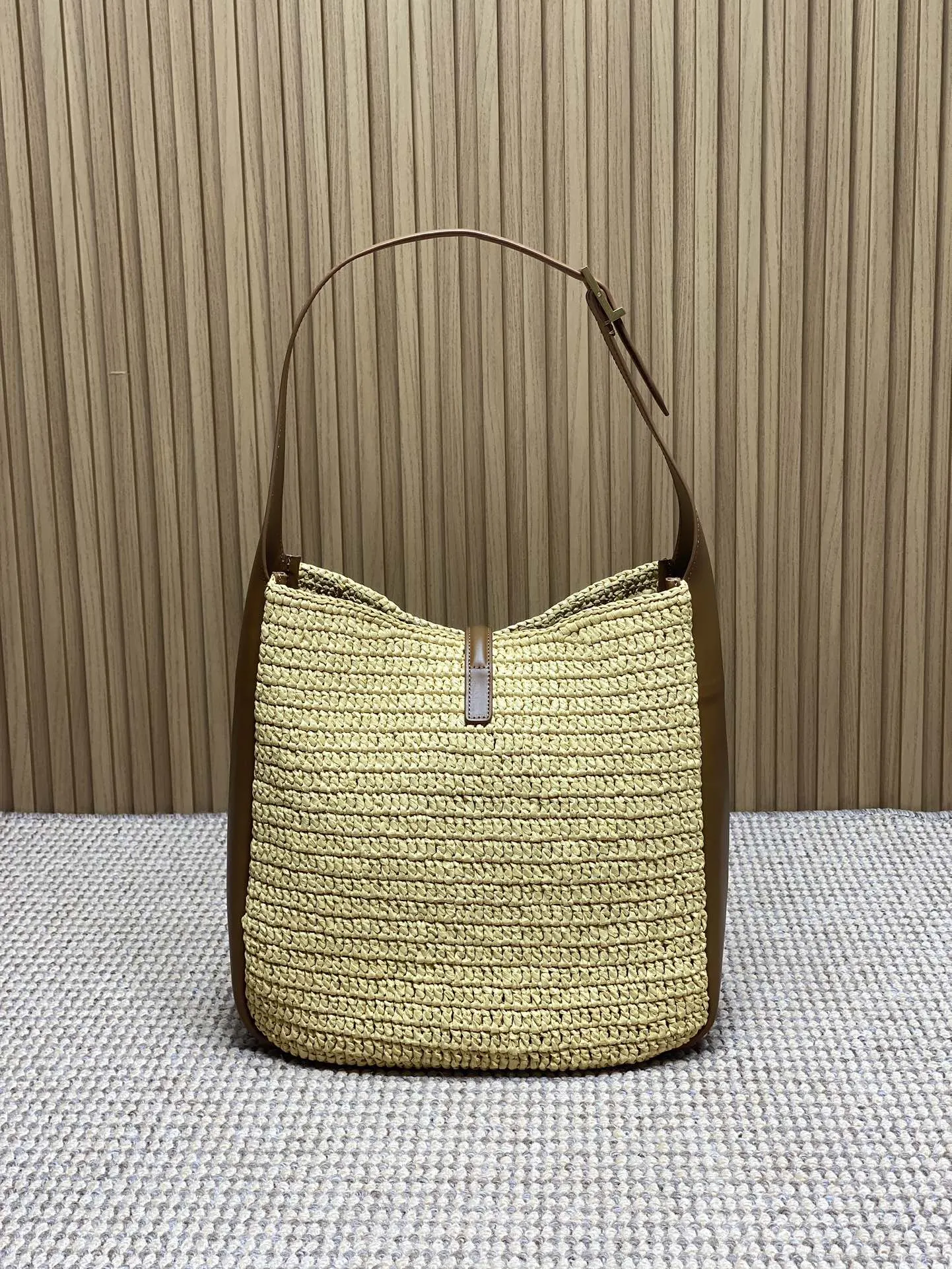 Yves Saint Laurentの新作ホーボーバッグは、草編み素材を使用した軽量でファッショナブルなデザインです。ベージュカラーにシンプルなYSLロゴが施され、手触りが柔らかく持ちやすいです。ROSE同款のデザインで、サイズは30x31x13cm。商品コードは753837です。日常使いに最適な一品で、スーパーコピーバッグとしても注目されています。