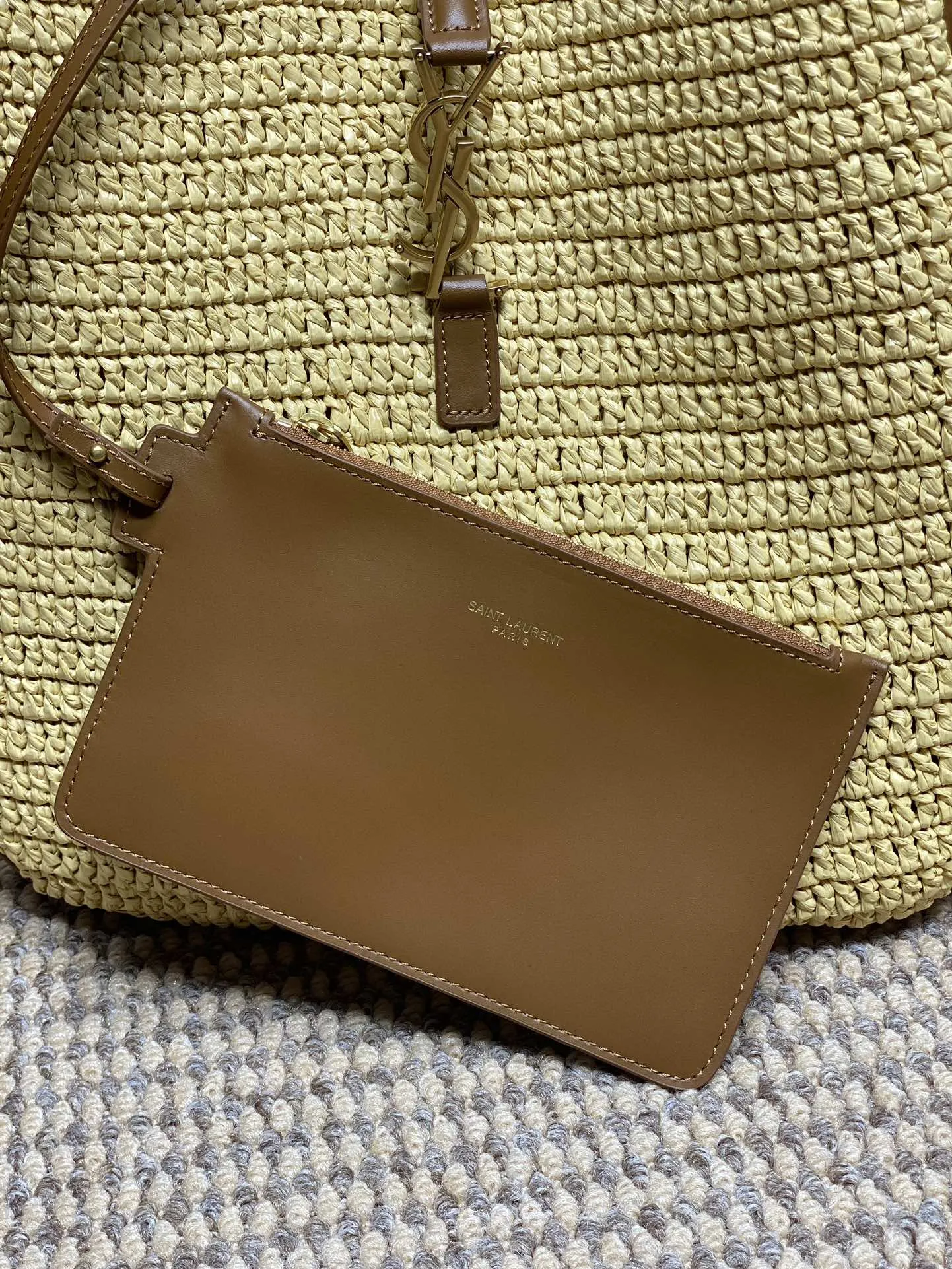 ベージュカラーでシンプルなYSLロゴ