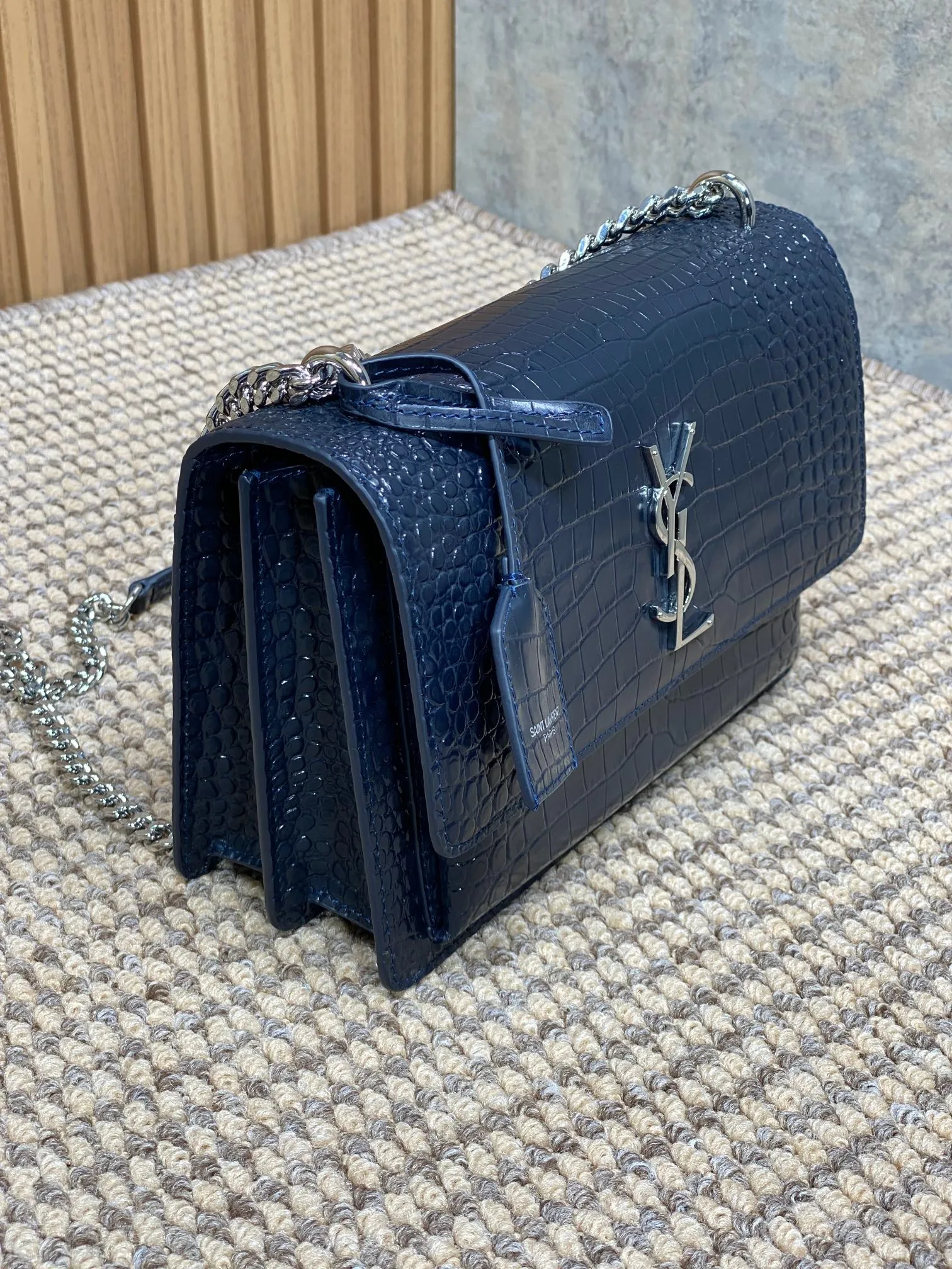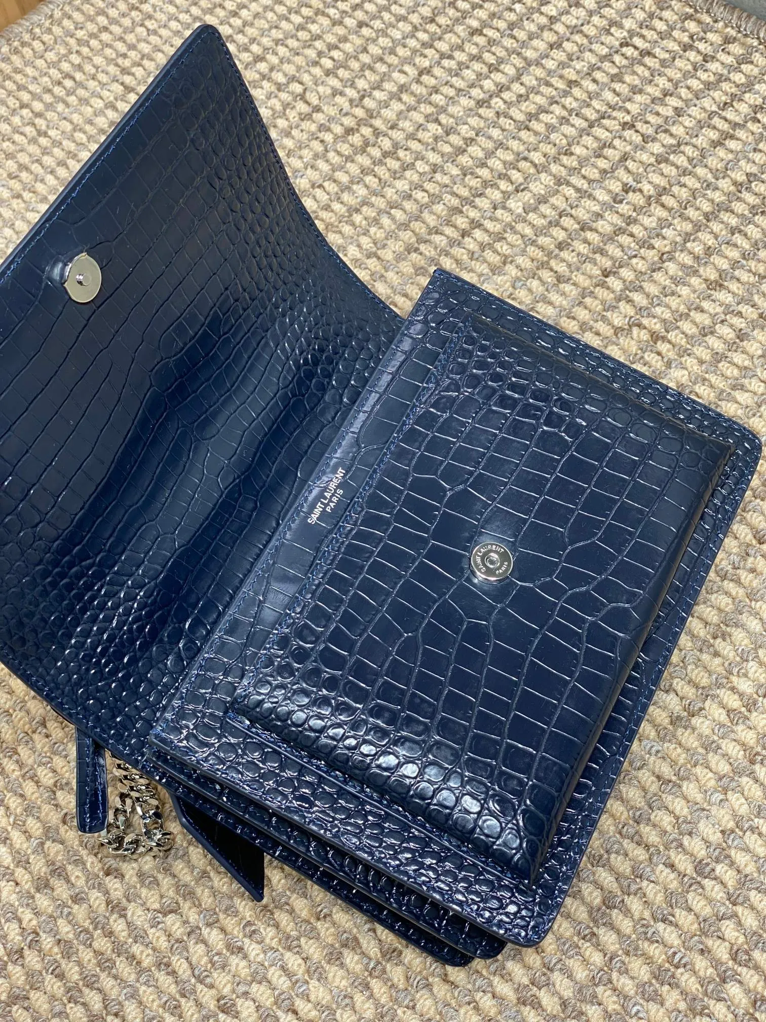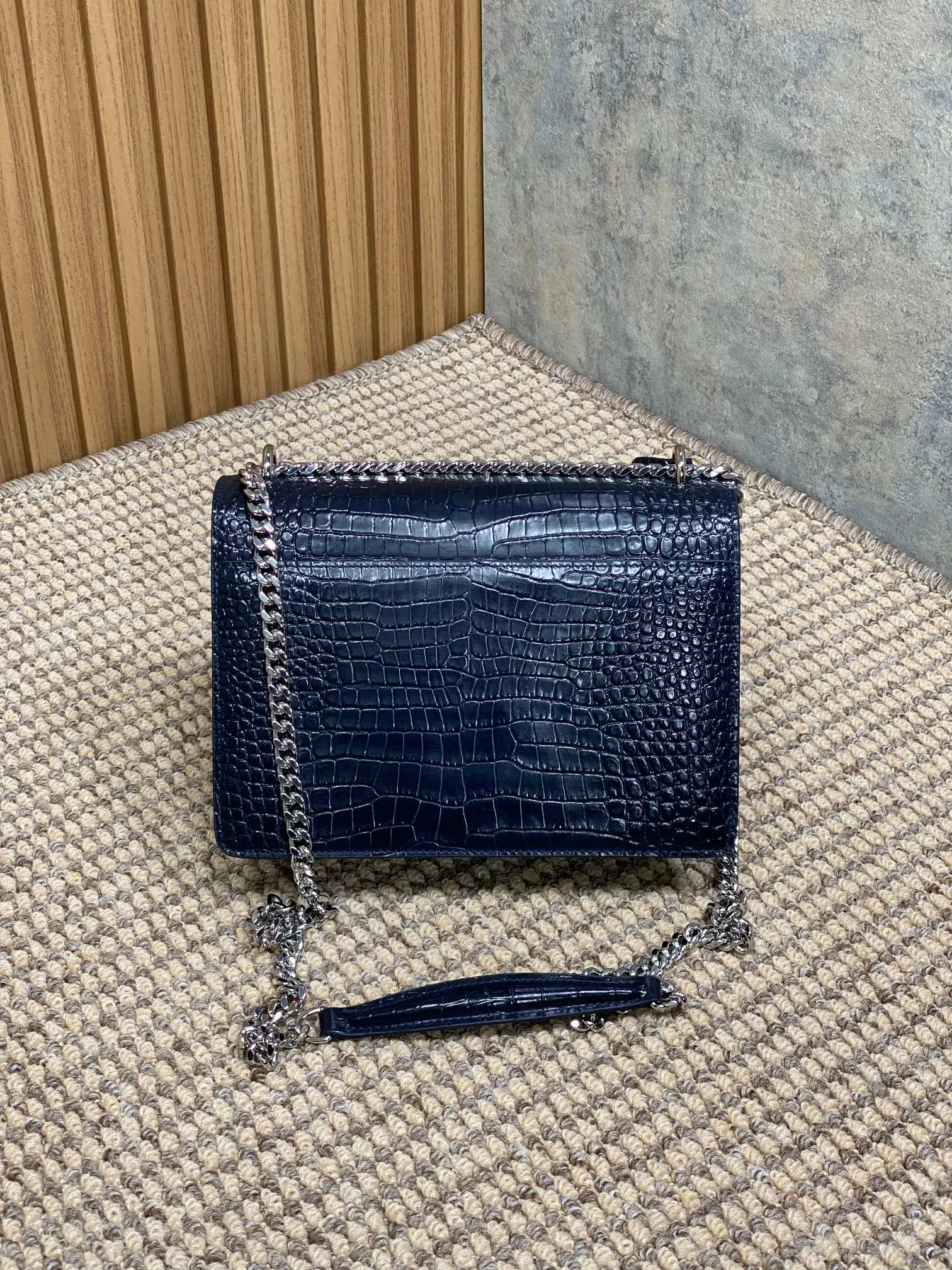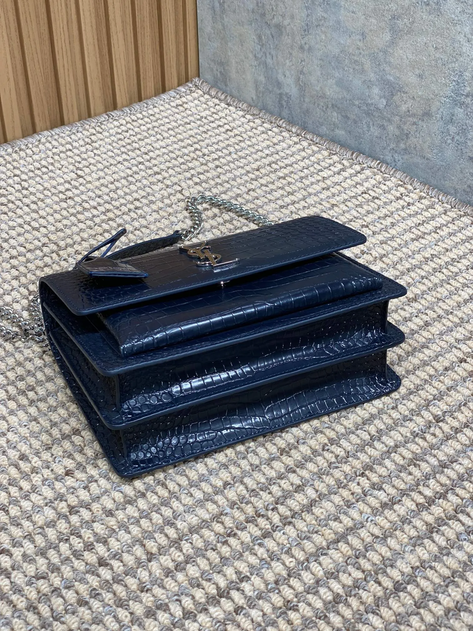 イヴ・サンローランの最新作、深蓝色のフロントフラップバッグです。高級クロコダイルレザーを使用し、オリジナルの皮革でカスタムメイドされています。サイドにはアコーディオン型のプリーツが施され、斜め掛けや肩掛けが可能です。完璧な金具仕上げで、非常に汎用性が高く実用的です。このような スーパーコピーバッグ は、スタイルと機能性を兼ね備えたアイテムとしておすすめです。サイズは22×16×8cmで、商品コードは441971です。