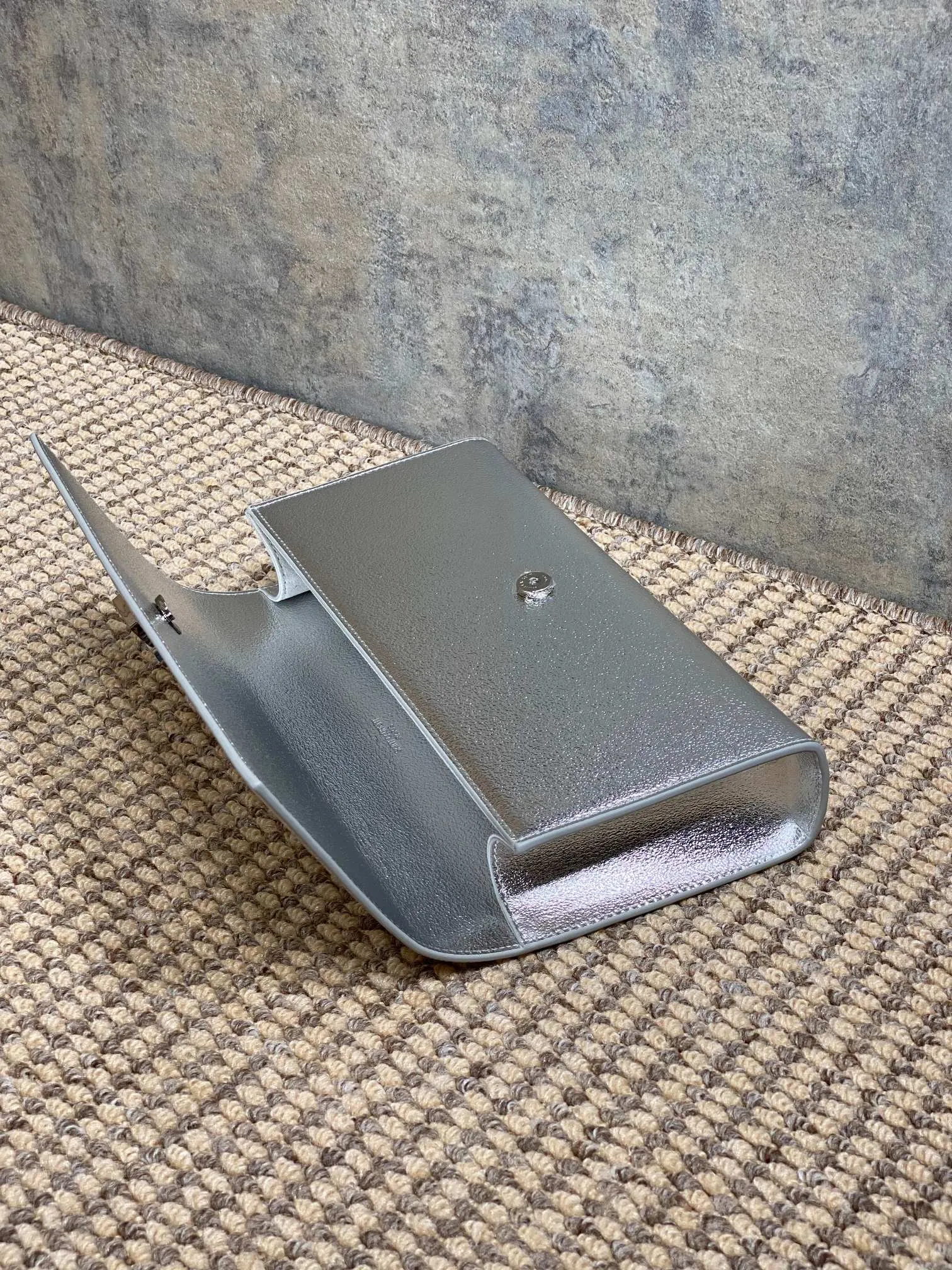 イヴサンローランのクラシックなシルバーハンドバッグです。高級感あふれる進口牛皮を使用し、ドリームテクスチャーが特徴的なデザインとなっています。市場トップクラスの品質を誇り、N級品として多くの方に愛されています。フォーマルなシーンからカジュアルなスタイルまで幅広く対応します。サイズは27×12.5x5cmで、商品コードは354029です。シンプルでありながらエレガントな佇まいが魅力です。