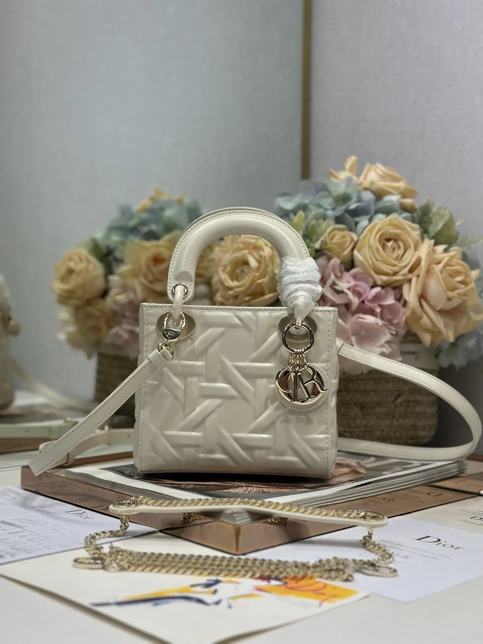 Christian Dior 白色プレス花菱格 Lady Dior ハンドバッグ