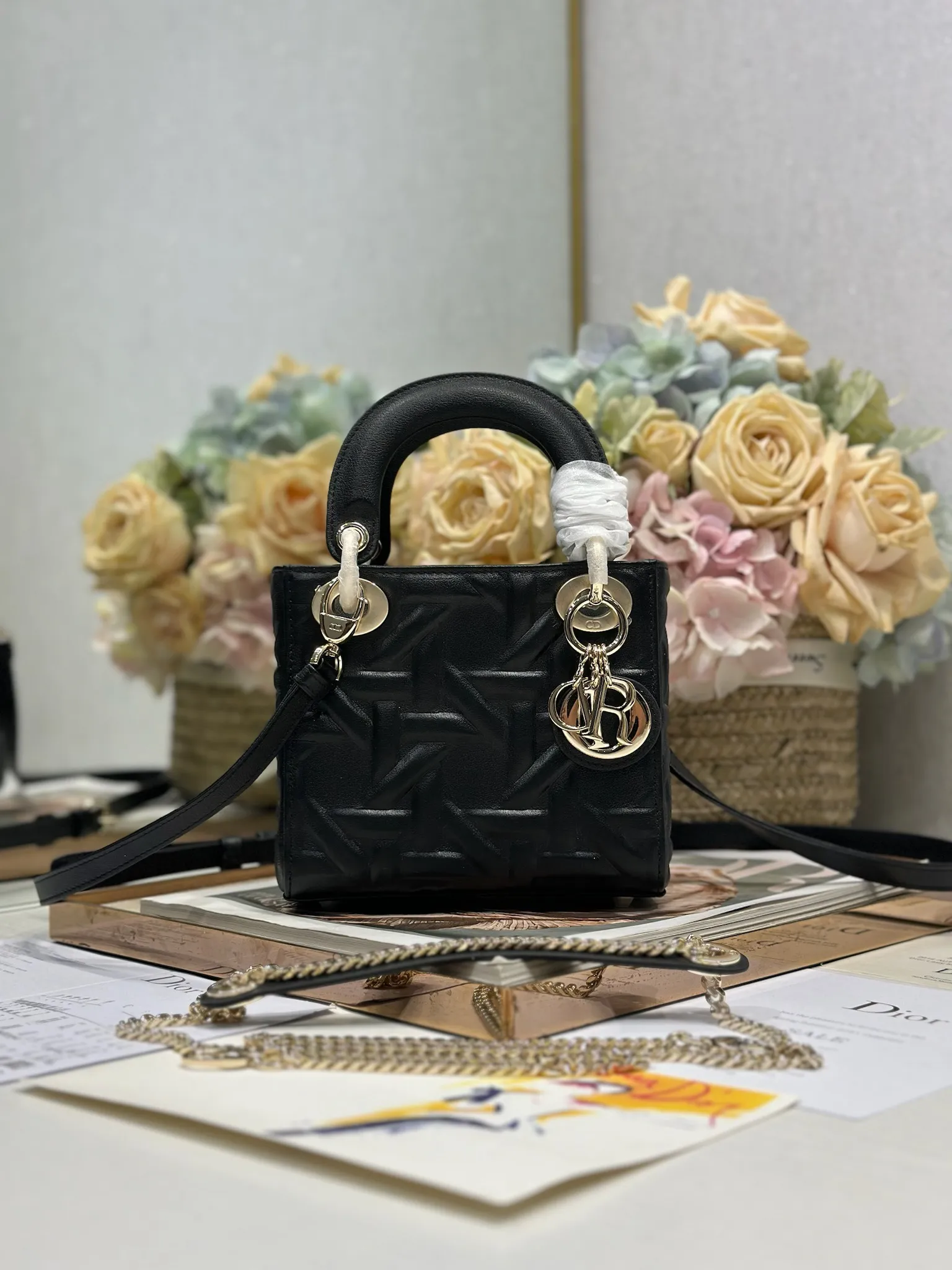 Christian Dior ブラックプレス花菱格Lady Diorバッグ