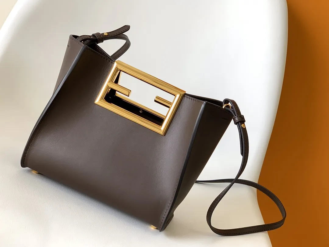 Fendi Way小号手袋ブラウンレザーFFロゴ