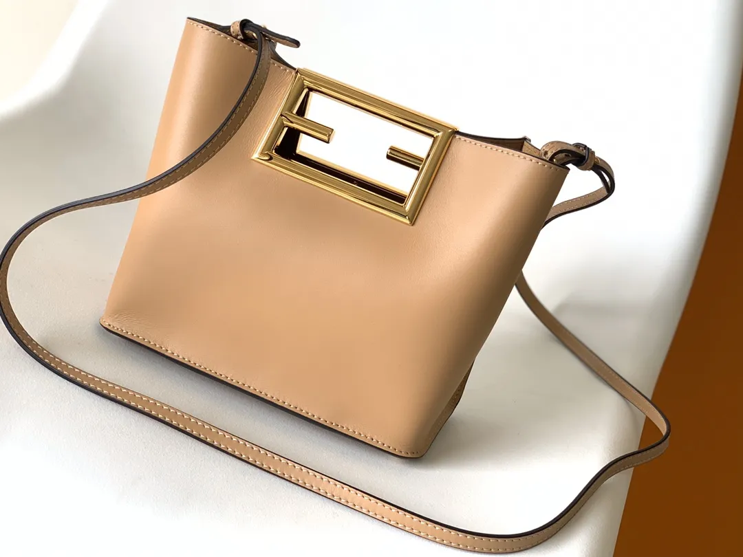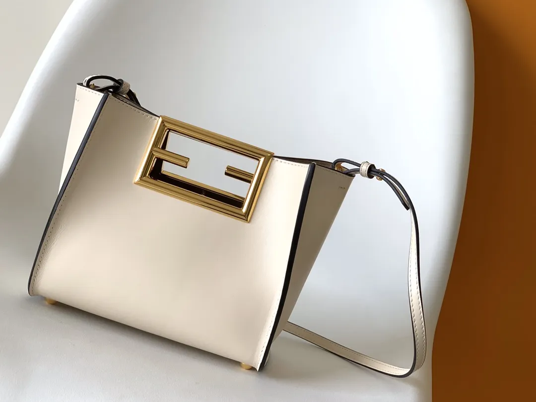Fendi Way小号手袋ベージュレザーFFロゴ