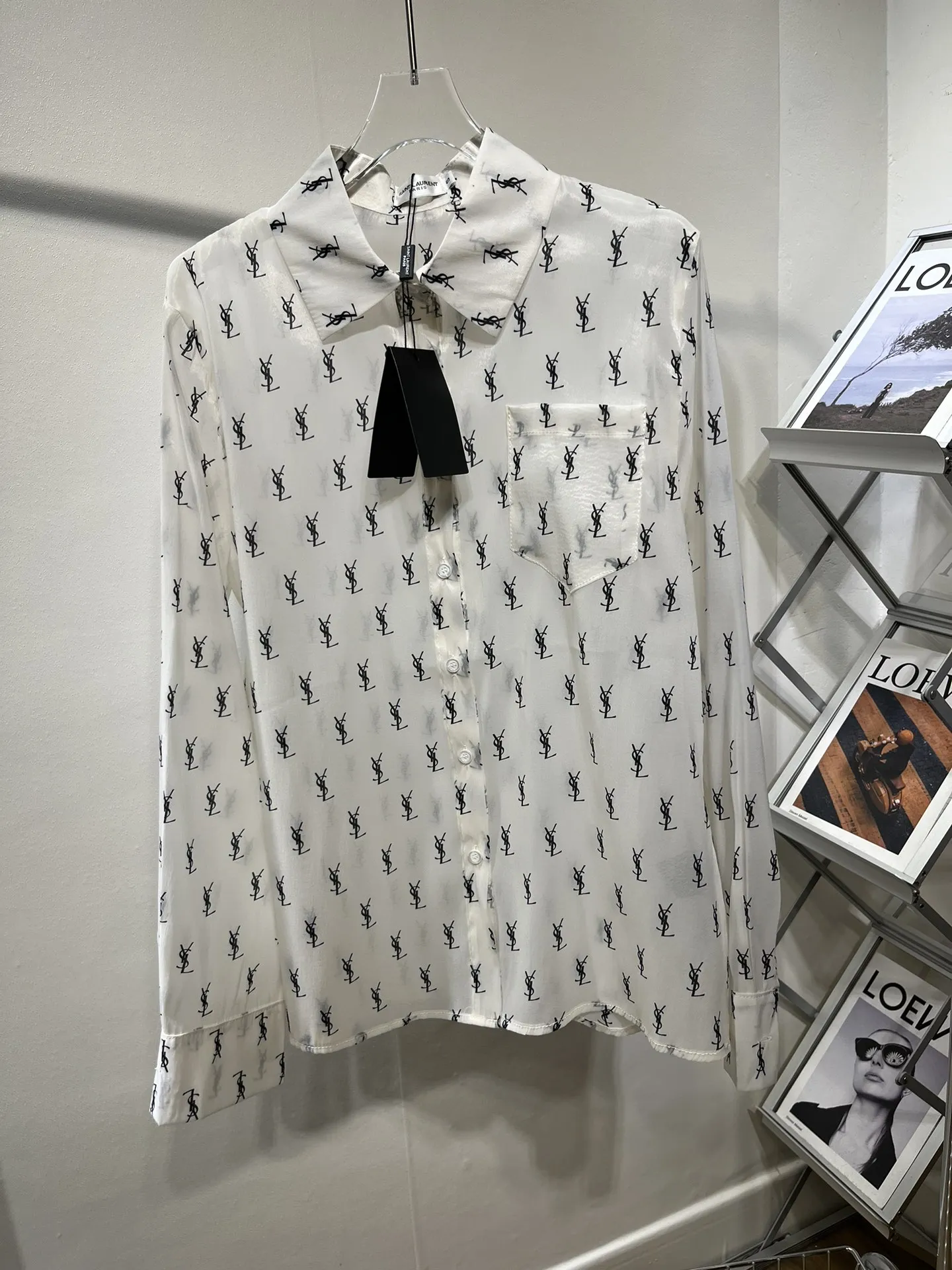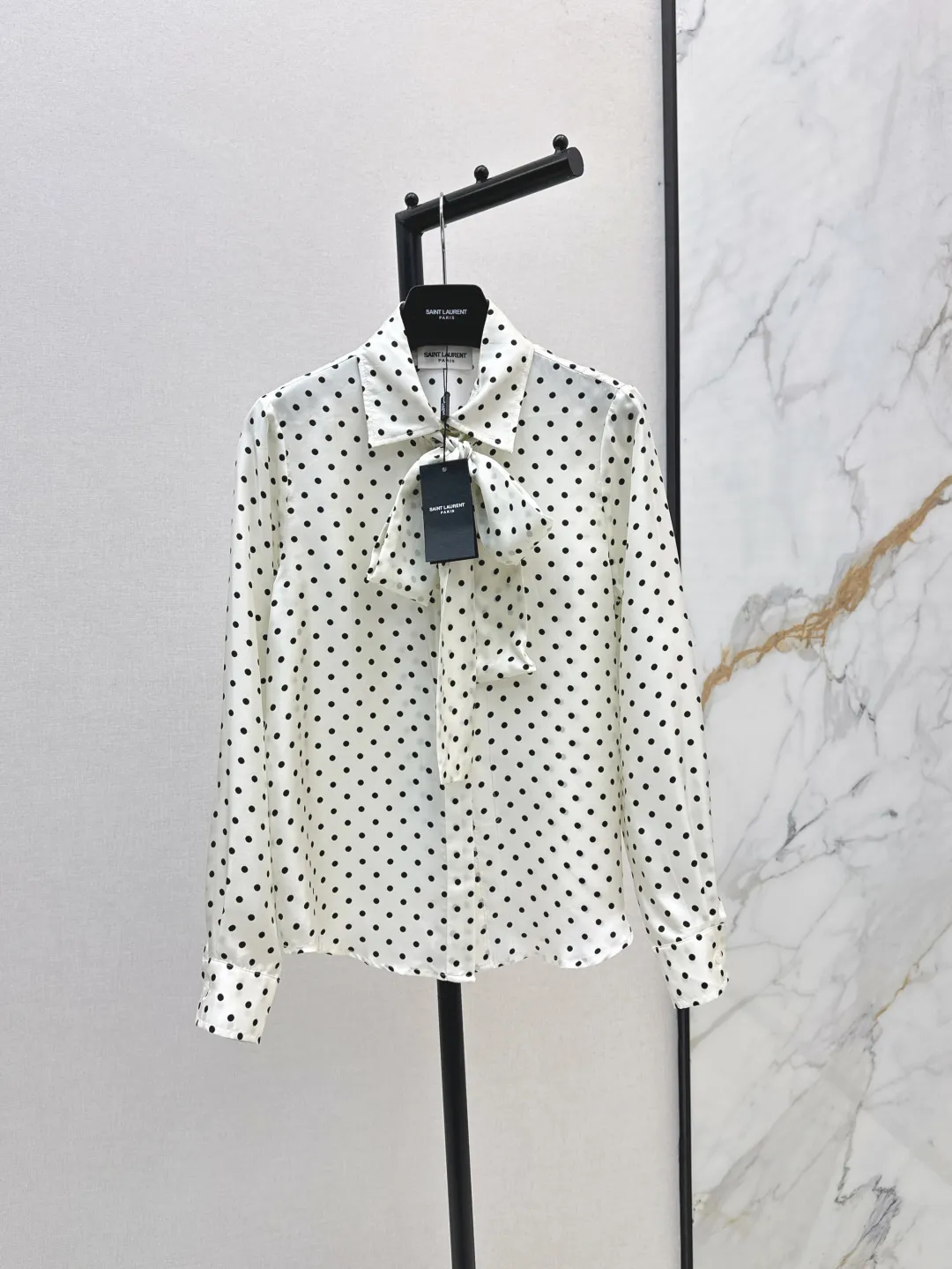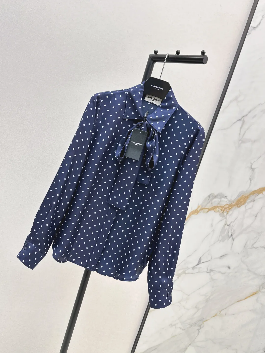 Saint Laurent Paris新作青水玉模様シルクシャツ