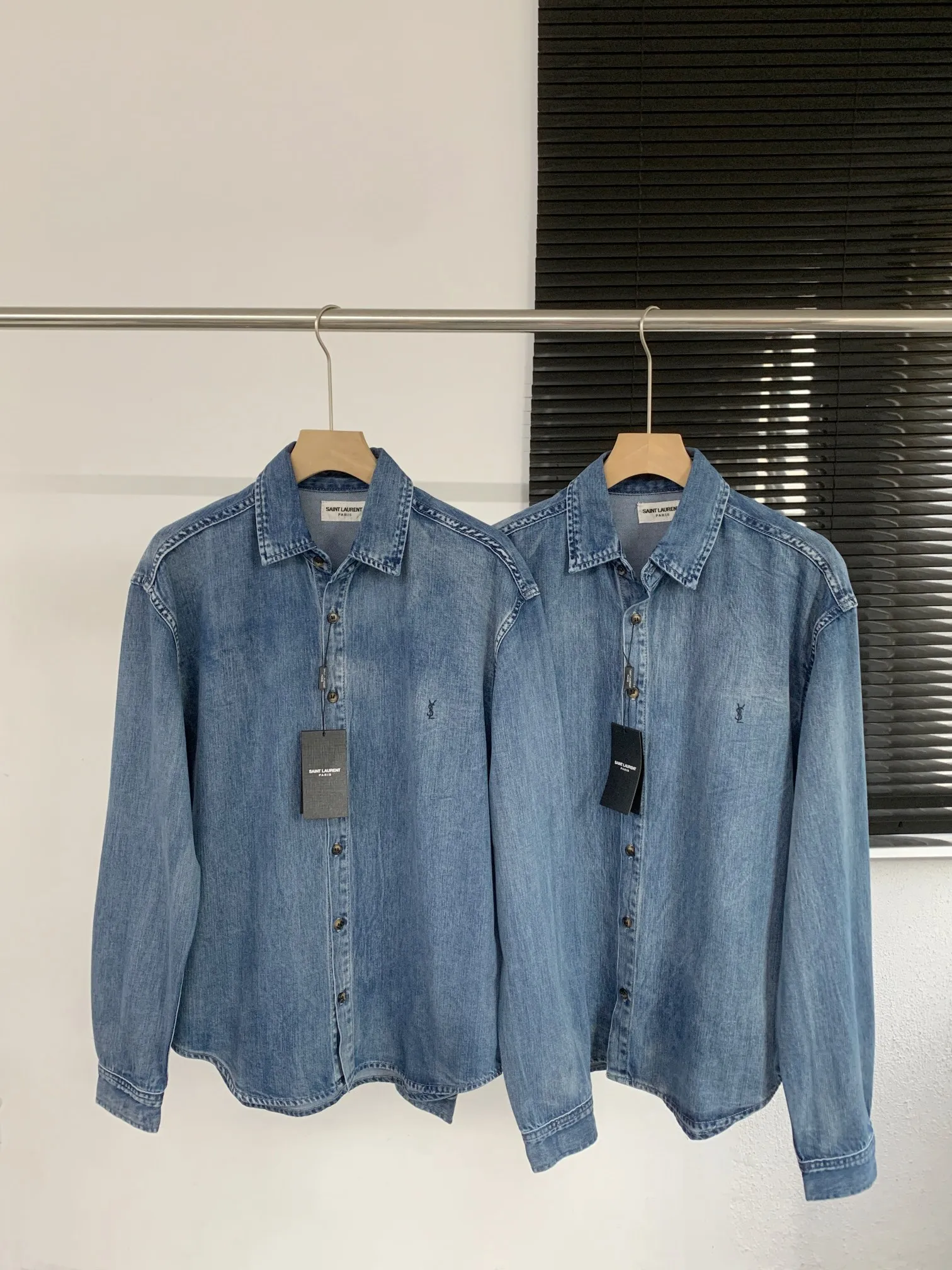 YSL新作青カウボーイシャツコートアルファベット刺繍