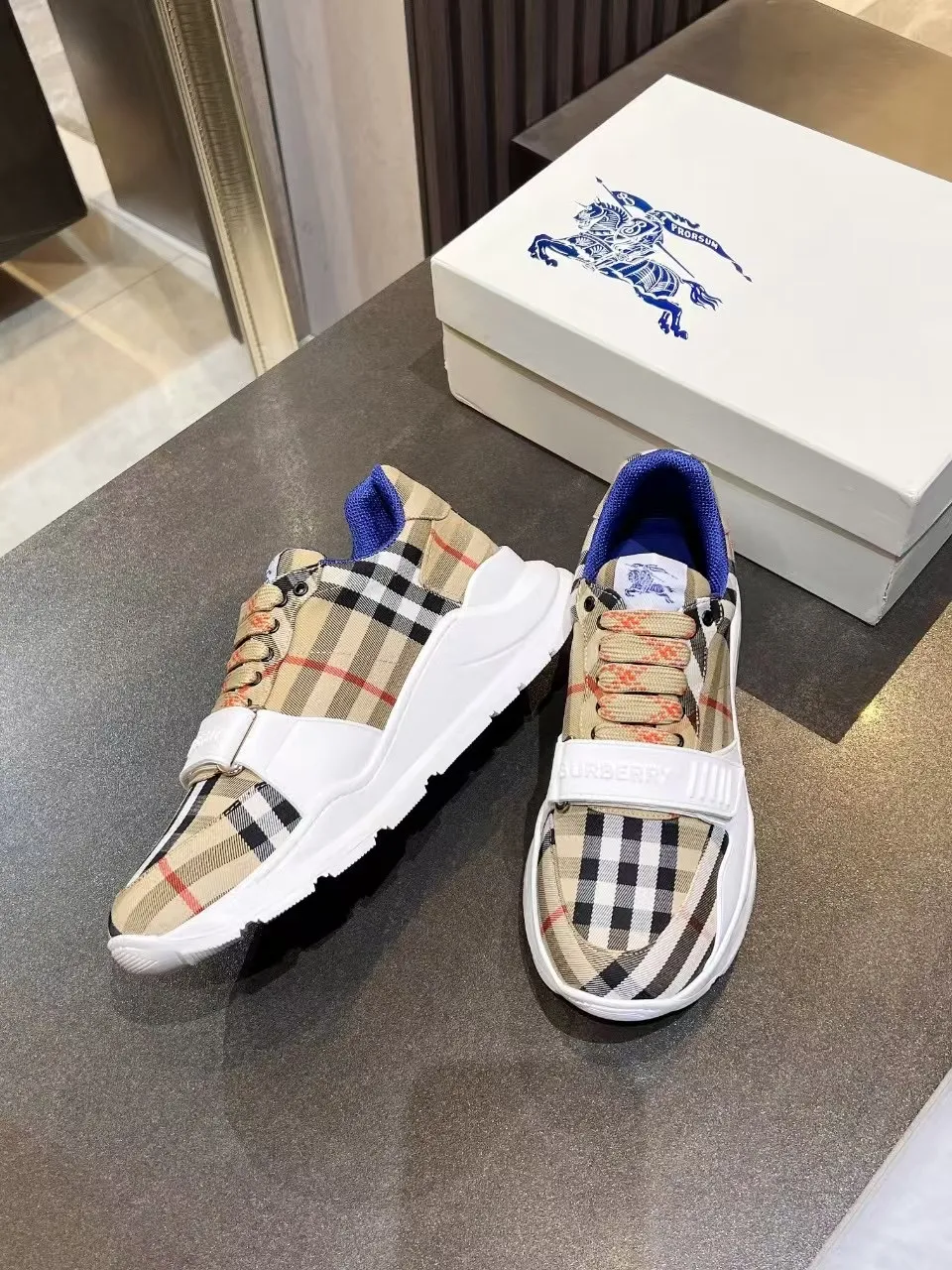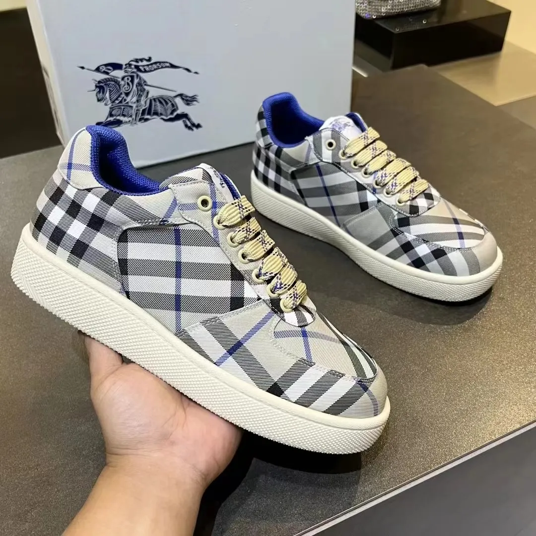 BURBERRY 2024新作 深蓝色格纹运动鞋